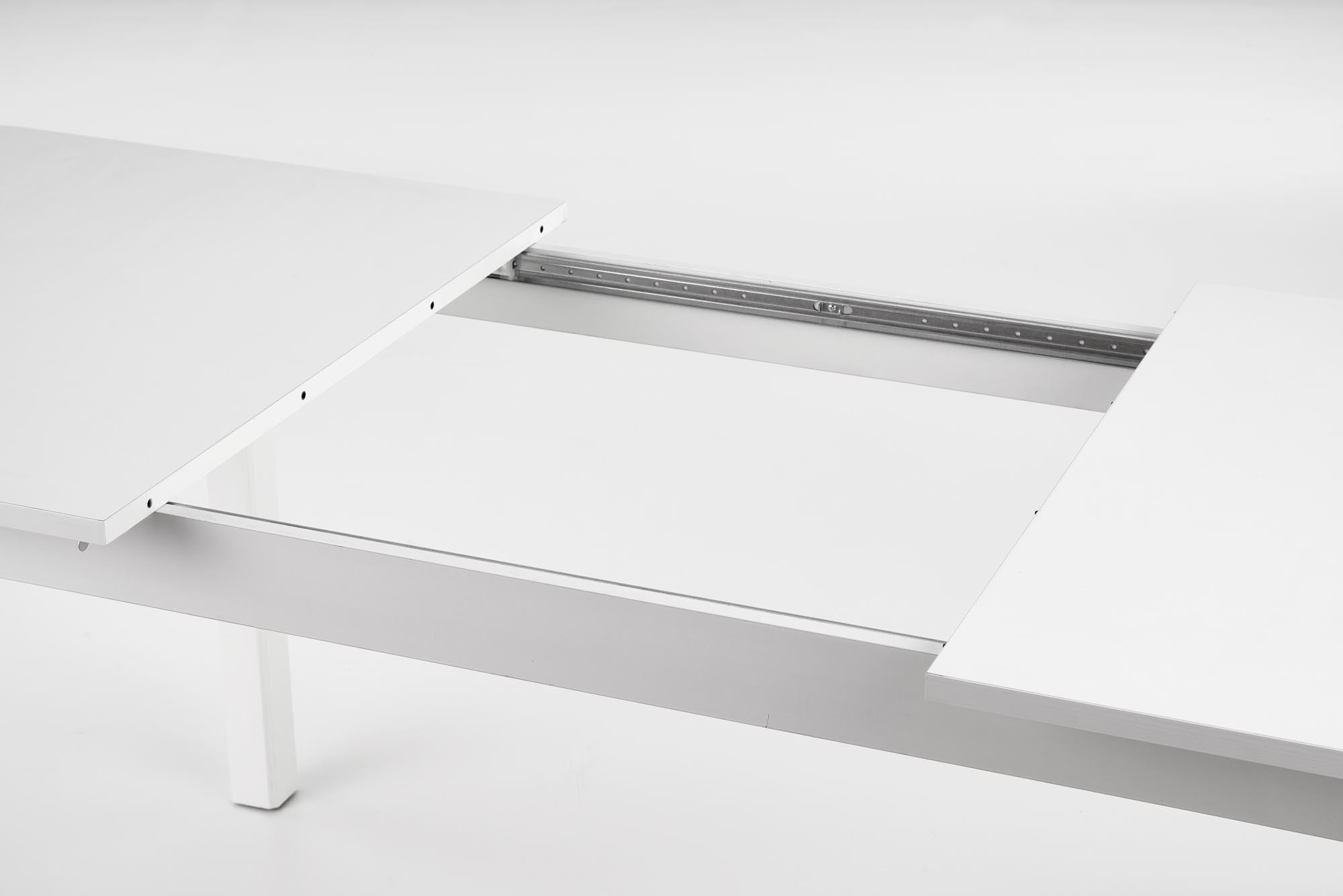 rozměry: 141-219/80/78 cm, skládací stůl, materiál: nábytková deska potažená dýhou / MDF potažená dýhou, barva: deska stolu - bílá, nohy - bílé