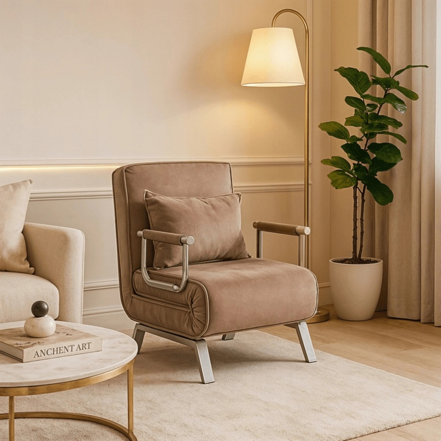 Rozkládací křeslo BART Béžové Sametové