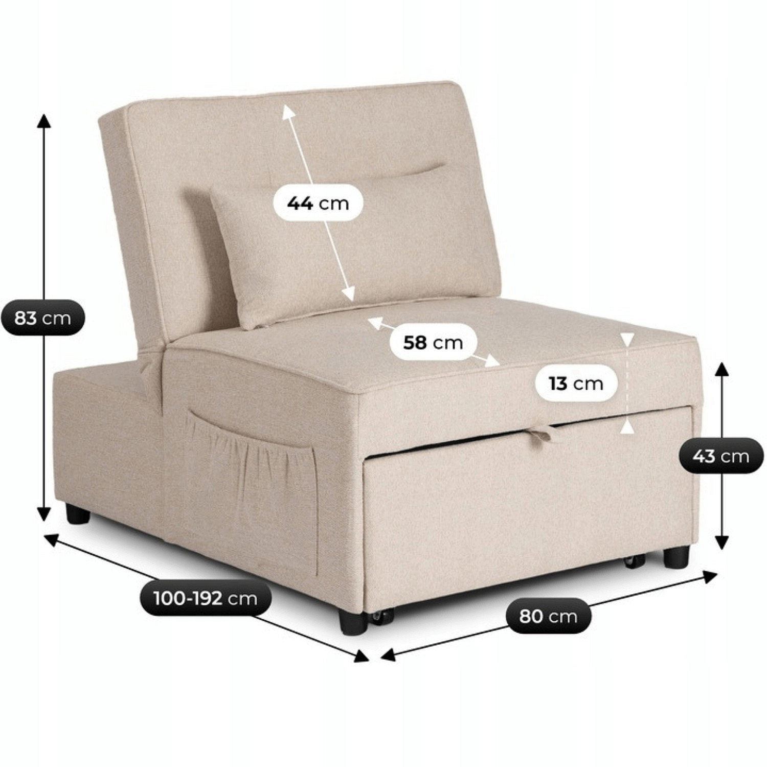 Rozkládací křeslo IBERIS 80 cm na spaní Béžové