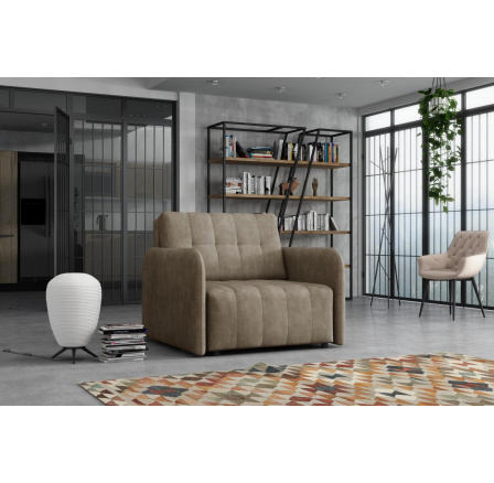 Rozkládací křeslo Vivian je vhodné do dětského, studentského, nebo hostinského pokoje. Jednoduchým rozložením pomocí automatu, získáte lůžko k příležitostnému přespání Vaší návštěvy, nebo kamaráda Vašich dětí. Výplň sedáku tvoří vlnité pružiny v kombinaci s PUR pěnou. Křeslo je potaženo kvalitní látkou s výběrem několika trendy odstínů a velmi elegantním prošíváním. Křeslo disponuje i nepostradatelným úložným prostorem, který využijete např. na deku a polštář. Ostatní vyobrazené doplňky a dekorace nejsou v ceně. Zobrazení barev na fotografii se může od skutečnosti lišit.