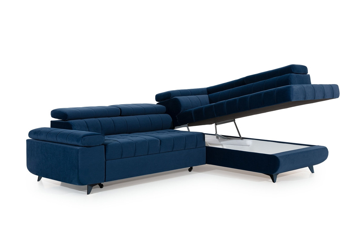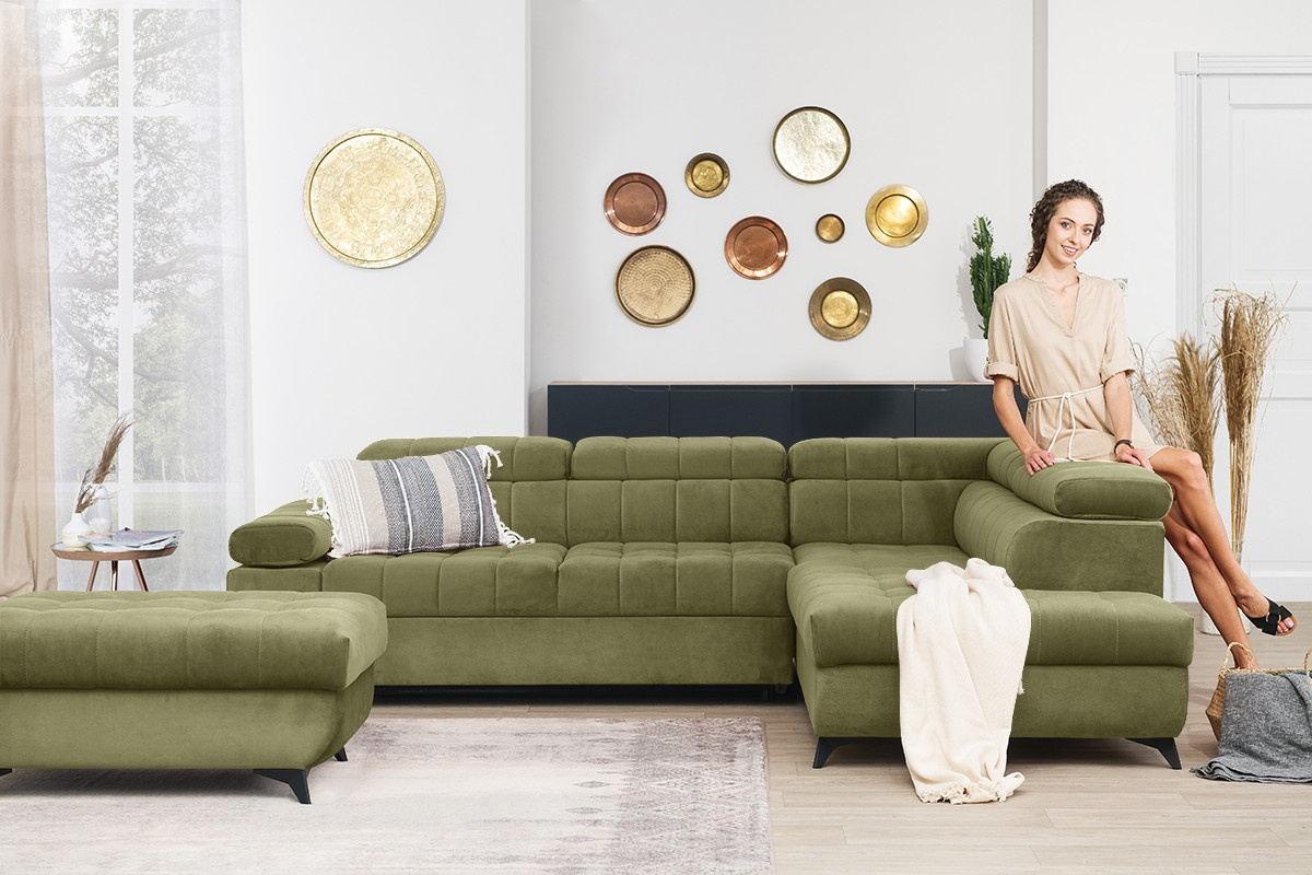 rozkládací rohová sedací souprava do obývacího pokoje Dragonis, šířka: 268, výška: 76/97, hloubka: 201, Spací plocha: 192 x 123, Montáž: Vlastní. Prošívaná rohová sedací souprava s nastavitelnými opěrkami hlavy Dragon.