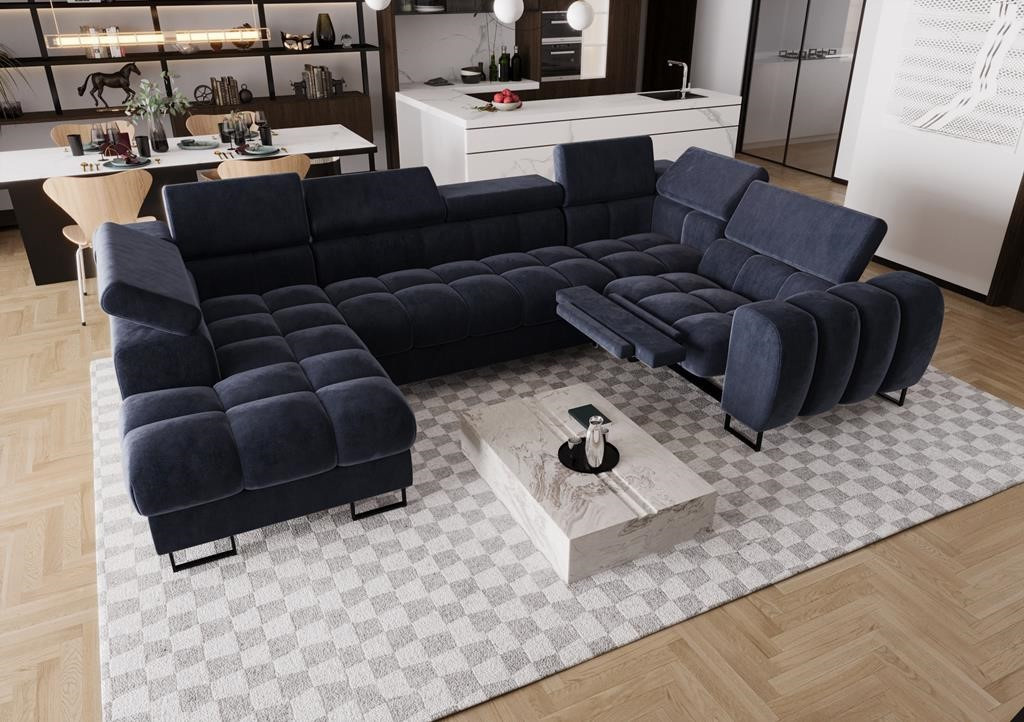 Rohová sedací souprava ASPEN MAX II , relax 198x350x170 cm - modrá , pravá