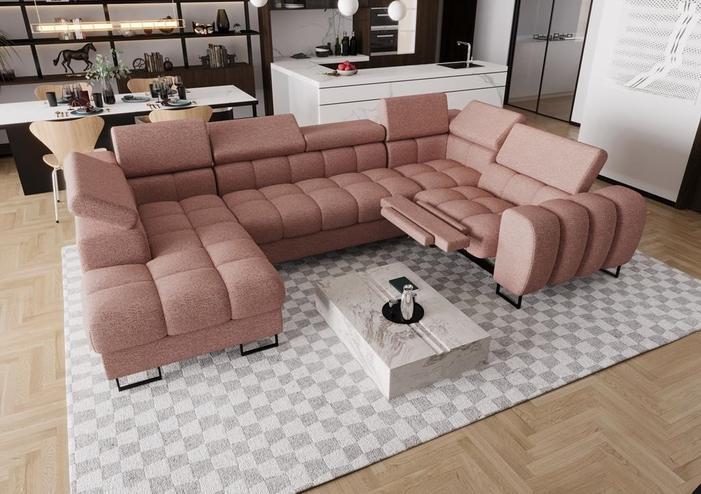 Rohová sedací souprava ASPEN MAX II , relax 198x350x170 cm - pravá, růžová