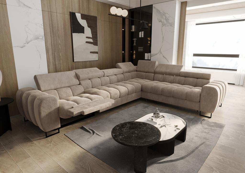 Rohová sedací souprava ASPEN MAX , relax průměr 30x260 cm - volitelný odstín- pravá