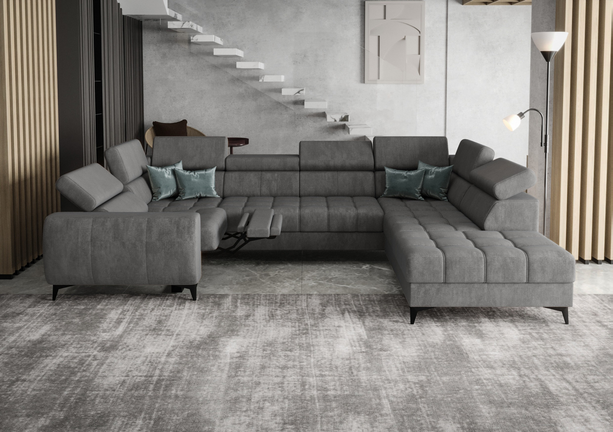 Rohová sedací souprava PORTO MAX I , relax 225X350X193 cm - šedá , pravá