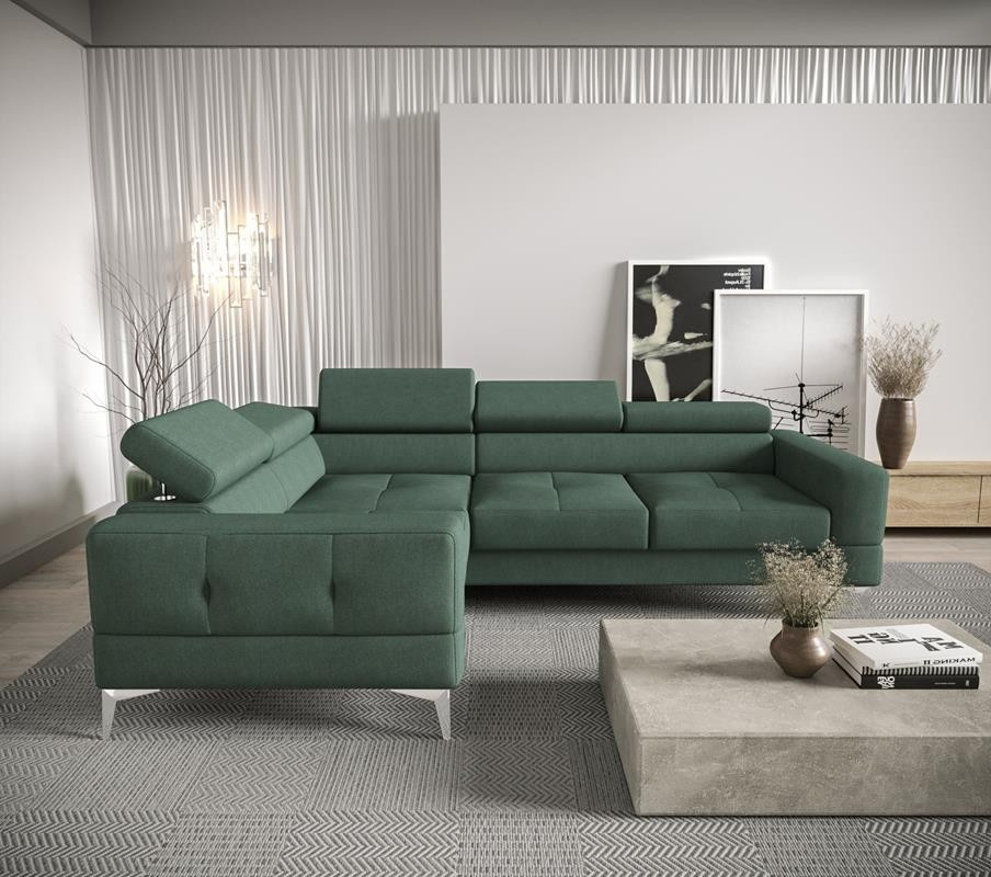 Rozkládací rohová sedačka Toscania je jen jedním z mnoha našich žhavých návrhů. Rohová sedačka na vysokých nožkách s prošívanými sedáky a nastavitelnými opěrkami hlavy se dokonale hodí jak do moderních, tak i klasických interiérů. Seznamte se s rozsáhlou nabídkou. Nejsi si jistý, která tkanina bude nejvhodnější? Kontaktujte našeho konzultanta a obdržíte zdarma vzorky materiálu.