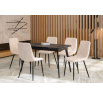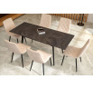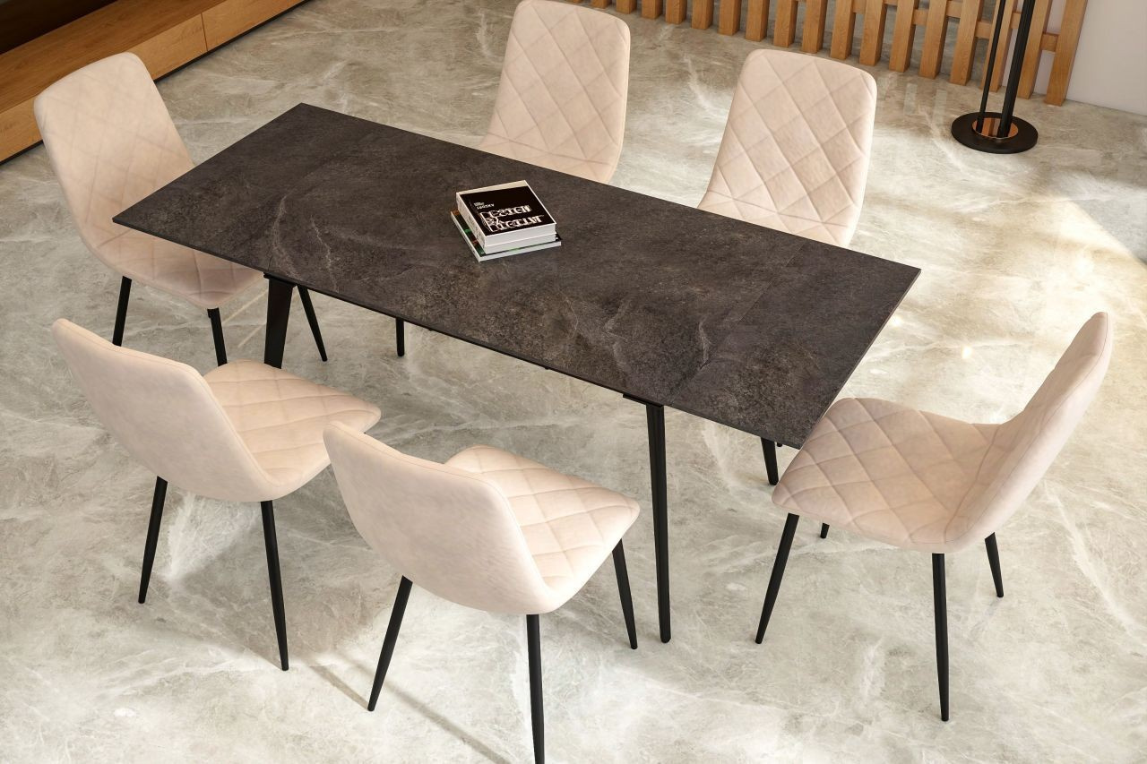 Rozměry: - délka: 120 cm (po rozložení 180 cm) - šířka: 80 cm - výška: 76 cm Materiál: - deska + vložka: keramika - nohy + rám: kov lakovaný práškovou barvou Barva: - grafitová matná + černá Ostatní: - rozkládání: synchronní mechanismus s automatickým vysouváním vložek