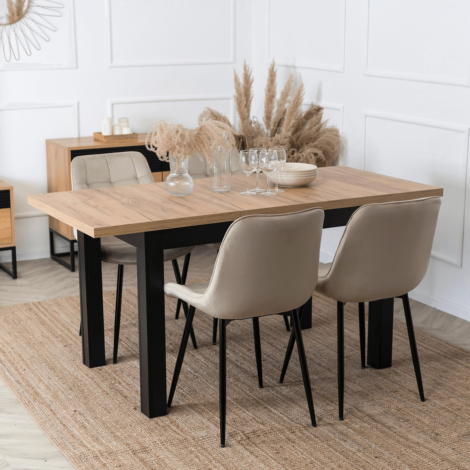 Rozkládací stůl SKUBI 120-160 cm Dub Craft/Černý