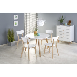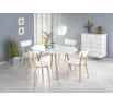 rozměry: 102-142/102/73 cm, rozkládací stůl, materiál: MDF dýha / masivní dřevo - buk, barva: deska - bílý mat, nohy - přírodní