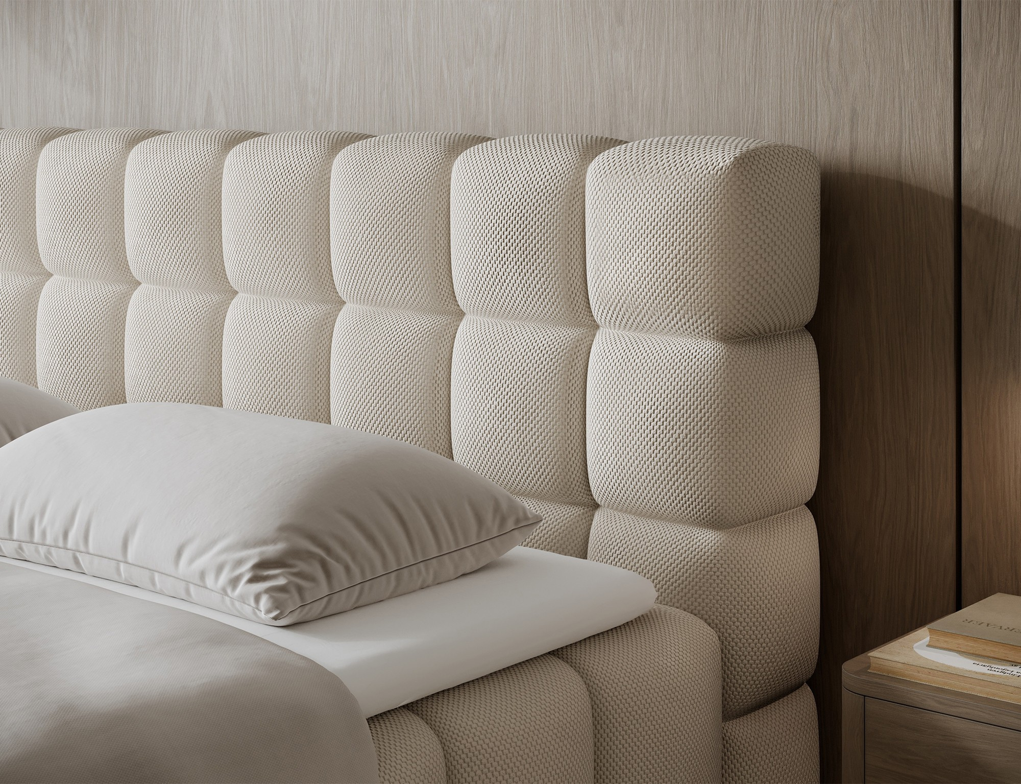 Kontinentální postel Sabeno je elegantní a funkční volbou pro každou moderní ložnici. Model je k dispozici ve třech velikostních variantách: 140x200 cm, 160x200 cm a 180x200 cm, což vám umožňuje přizpůsobit šířku postele vašim individuálním potřebám. Celková výška konstrukce je 111 cm a hloubka je 222 cm, což posteli dodává stabilní a impozantní vzhled. Pohodlí při spánku zajišťuje kombinace Bonellových pružin a pěny T2540, které poskytují správnou oporu a odolnost. Postel Sabeno je vybavena praktickým úložným prostorem na lůžkoviny, který pomáhá udržet vaši ložnici uspořádanou. Černé dřevěné nohy nábytku dokončují celkový design, přidávají jemnou eleganci a lehkost. Moderní styl Sabeno z něj činí ideální volbu jak pro minimalistické, tak pro výraznější interiérové uspořádání. Díky své funkčnosti, vysoce kvalitním materiálům a estetickému provedení je kontinentální postel Sabeno ideální volbou pro ty, kteří si cení pohodlí, odolnosti a stylového nábytku do ložnice.