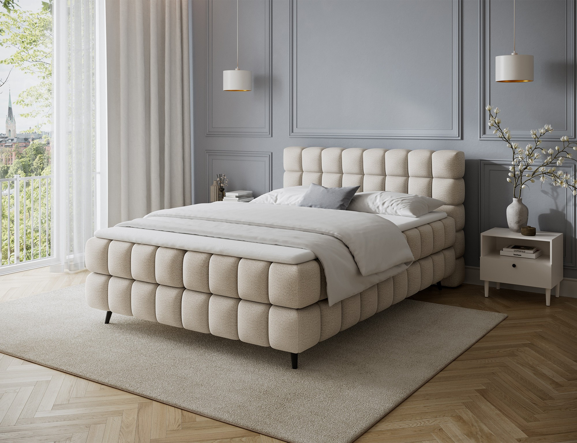 Kontinentální postel Sabeno je elegantní a funkční volbou pro každou moderní ložnici. Model je k dispozici ve třech velikostních variantách: 140x200 cm, 160x200 cm a 180x200 cm, což vám umožňuje přizpůsobit šířku postele vašim individuálním potřebám. Celková výška konstrukce je 111 cm a hloubka je 222 cm, což posteli dodává stabilní a impozantní vzhled. Pohodlí při spánku zajišťuje kombinace Bonellových pružin a pěny T2540, které poskytují správnou oporu a odolnost. Postel Sabeno je vybavena praktickým úložným prostorem na lůžkoviny, který pomáhá udržet vaši ložnici uspořádanou. Černé dřevěné nohy nábytku dokončují celkový design, přidávají jemnou eleganci a lehkost. Moderní styl Sabeno z něj činí ideální volbu jak pro minimalistické, tak pro výraznější interiérové uspořádání. Díky své funkčnosti, vysoce kvalitním materiálům a estetickému provedení je kontinentální postel Sabeno ideální volbou pro ty, kteří si cení pohodlí, odolnosti a stylového nábytku do ložnice.