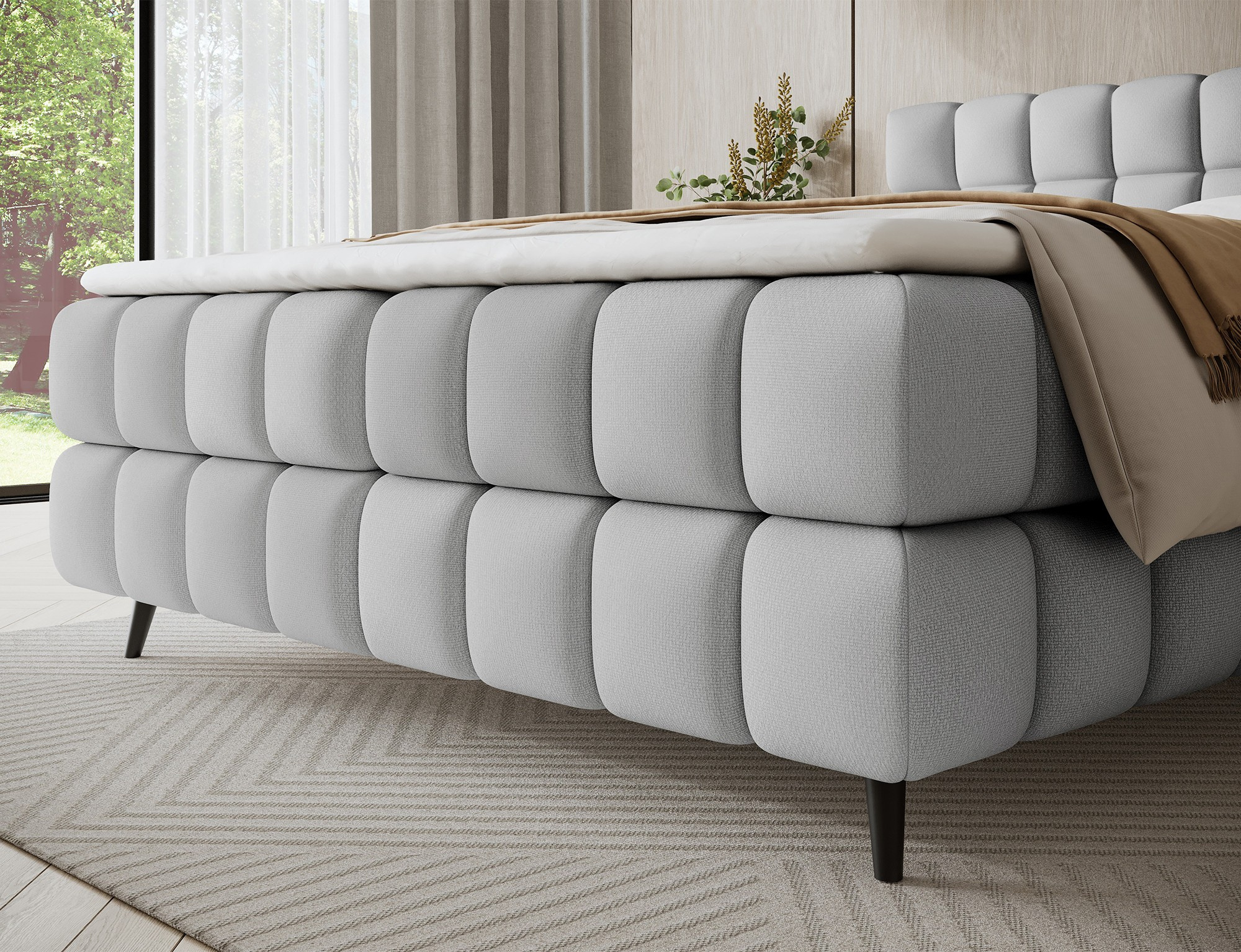 Kontinentální postel Sabeno je elegantní a funkční volbou pro každou moderní ložnici. Model je k dispozici ve třech velikostních variantách: 140x200 cm, 160x200 cm a 180x200 cm, což vám umožňuje přizpůsobit šířku postele vašim individuálním potřebám. Celková výška konstrukce je 111 cm a hloubka je 222 cm, což posteli dodává stabilní a impozantní vzhled. Pohodlí při spánku zajišťuje kombinace Bonellových pružin a pěny T2540, které poskytují správnou oporu a odolnost. Postel Sabeno je vybavena praktickým úložným prostorem na lůžkoviny, který pomáhá udržet vaši ložnici uspořádanou. Černé dřevěné nohy nábytku dokončují celkový design, přidávají jemnou eleganci a lehkost. Moderní styl Sabeno z něj činí ideální volbu jak pro minimalistické, tak pro výraznější interiérové uspořádání. Díky své funkčnosti, vysoce kvalitním materiálům a estetickému provedení je kontinentální postel Sabeno ideální volbou pro ty, kteří si cení pohodlí, odolnosti a stylového nábytku do ložnice.