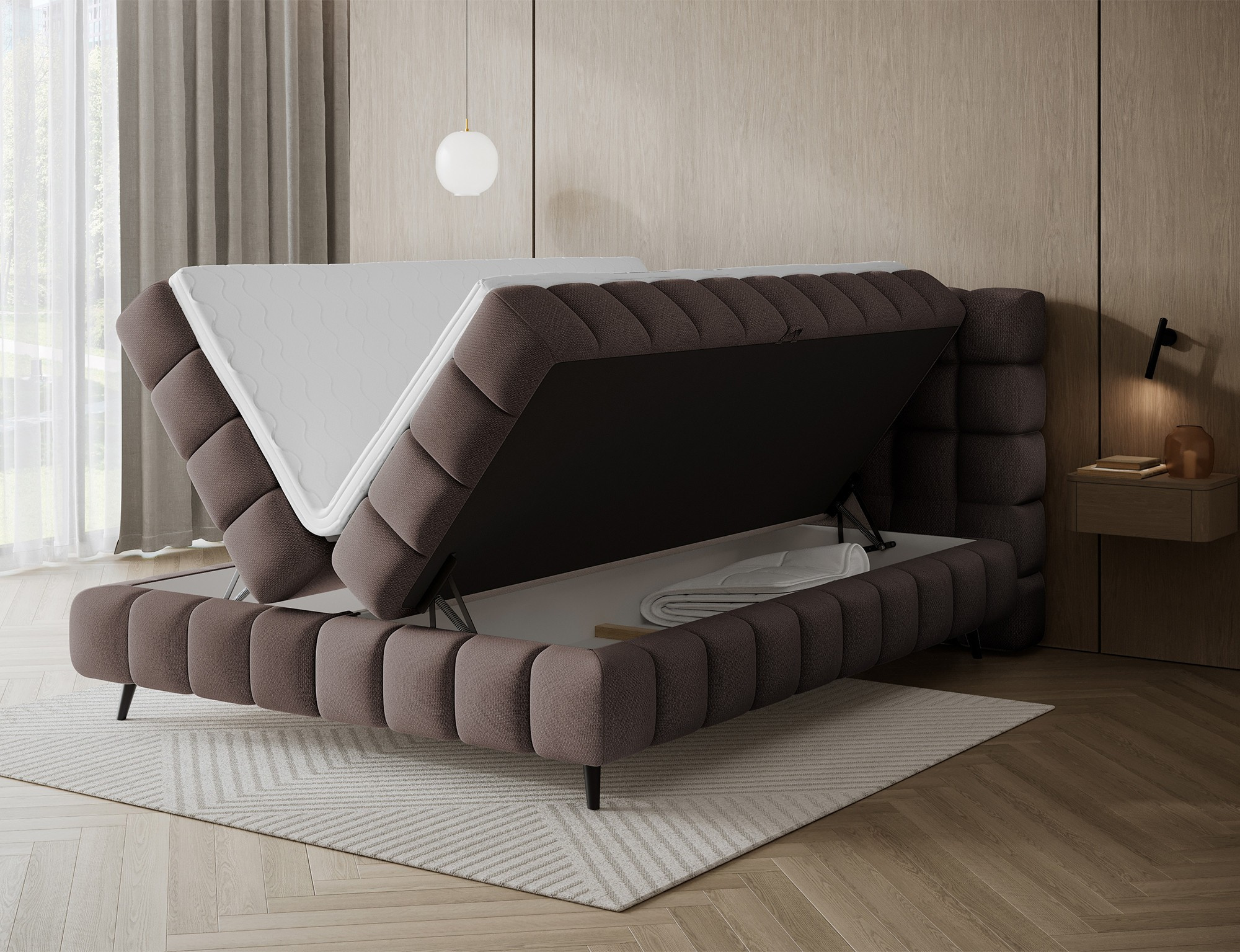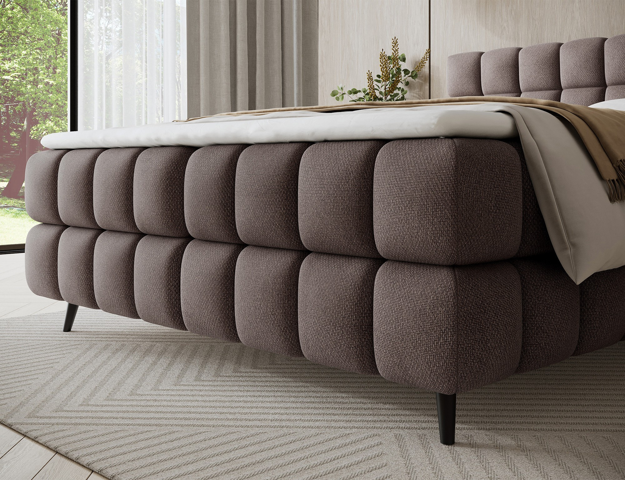 Kontinentální postel Sabeno je elegantní a funkční volbou pro každou moderní ložnici. Model je k dispozici ve třech velikostních variantách: 140x200 cm, 160x200 cm a 180x200 cm, což vám umožňuje přizpůsobit šířku postele vašim individuálním potřebám. Celková výška konstrukce je 111 cm a hloubka je 222 cm, což posteli dodává stabilní a impozantní vzhled. Pohodlí při spánku zajišťuje kombinace Bonellových pružin a pěny T2540, které poskytují správnou oporu a odolnost. Postel Sabeno je vybavena praktickým úložným prostorem na lůžkoviny, který pomáhá udržet vaši ložnici uspořádanou. Černé dřevěné nohy nábytku dokončují celkový design, přidávají jemnou eleganci a lehkost. Moderní styl Sabeno z něj činí ideální volbu jak pro minimalistické, tak pro výraznější interiérové uspořádání. Díky své funkčnosti, vysoce kvalitním materiálům a estetickému provedení je kontinentální postel Sabeno ideální volbou pro ty, kteří si cení pohodlí, odolnosti a stylového nábytku do ložnice.