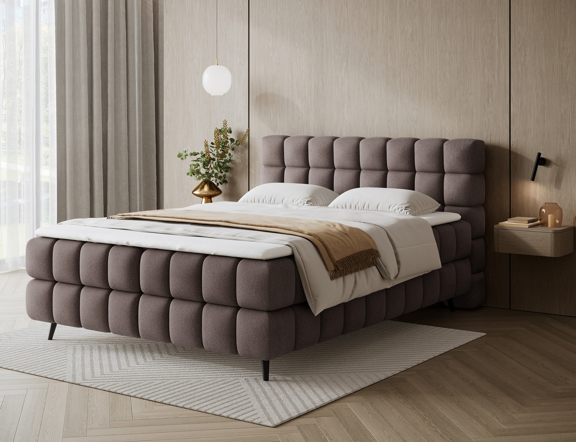 Kontinentální postel Sabeno je elegantní a funkční volbou pro každou moderní ložnici. Model je k dispozici ve třech velikostních variantách: 140x200 cm, 160x200 cm a 180x200 cm, což vám umožňuje přizpůsobit šířku postele vašim individuálním potřebám. Celková výška konstrukce je 111 cm a hloubka je 222 cm, což posteli dodává stabilní a impozantní vzhled. Pohodlí při spánku zajišťuje kombinace Bonellových pružin a pěny T2540, které poskytují správnou oporu a odolnost. Postel Sabeno je vybavena praktickým úložným prostorem na lůžkoviny, který pomáhá udržet vaši ložnici uspořádanou. Černé dřevěné nohy nábytku dokončují celkový design, přidávají jemnou eleganci a lehkost. Moderní styl Sabeno z něj činí ideální volbu jak pro minimalistické, tak pro výraznější interiérové uspořádání. Díky své funkčnosti, vysoce kvalitním materiálům a estetickému provedení je kontinentální postel Sabeno ideální volbou pro ty, kteří si cení pohodlí, odolnosti a stylového nábytku do ložnice.