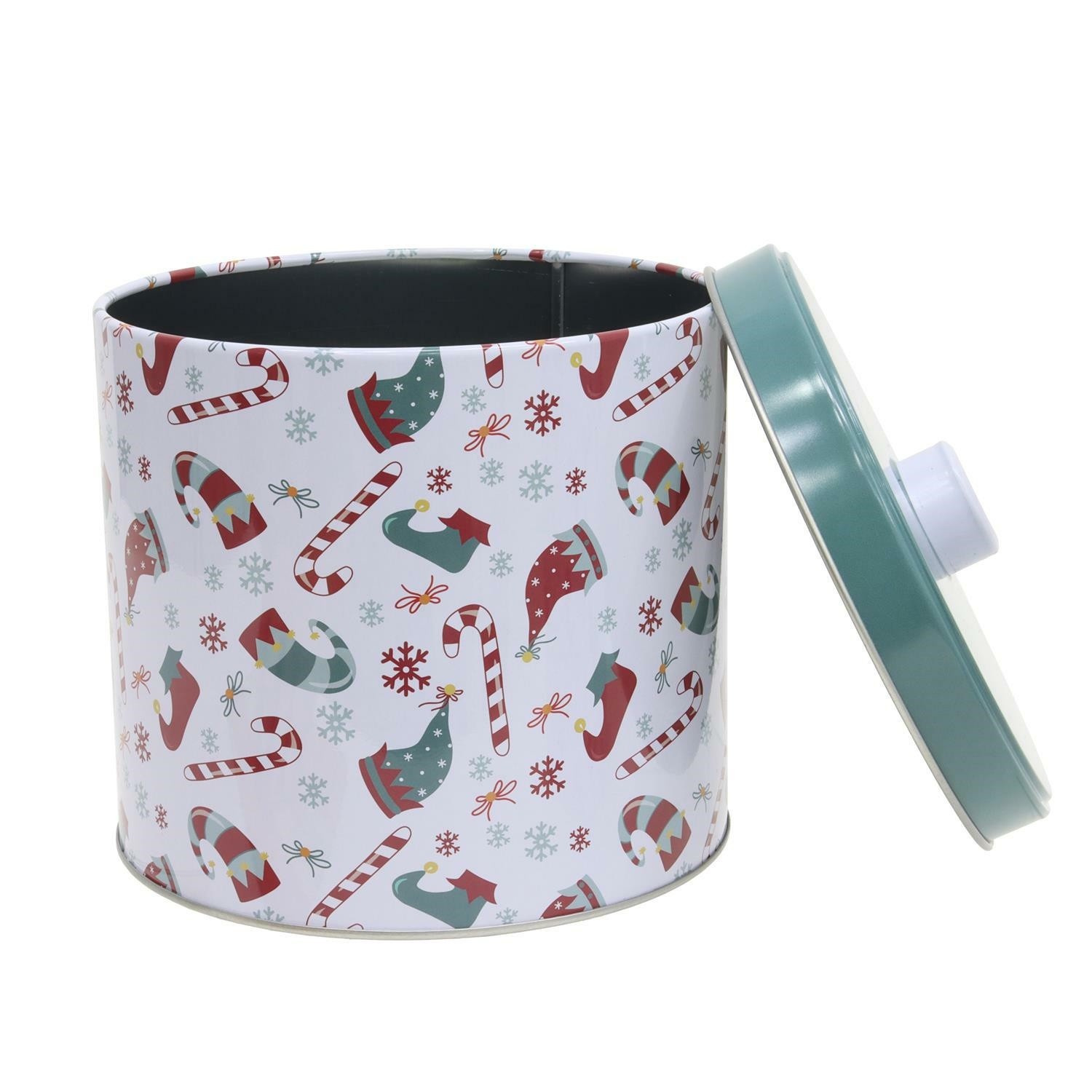Sada dvou kovových krabiček s vánočním vzorem je ideální pro ukládání vánočních perníčků nebo cukrovinek. Kovové plechovky válcovitého tvaru byly vybaveny víčky také z kovu. Dekorativní funkci nádobám dodává sváteční vzor. Rozměry plechovek: velká výška 19,2 cm průměr 17,5 cm. Malá výška 14 cm, průměr 15 cm.