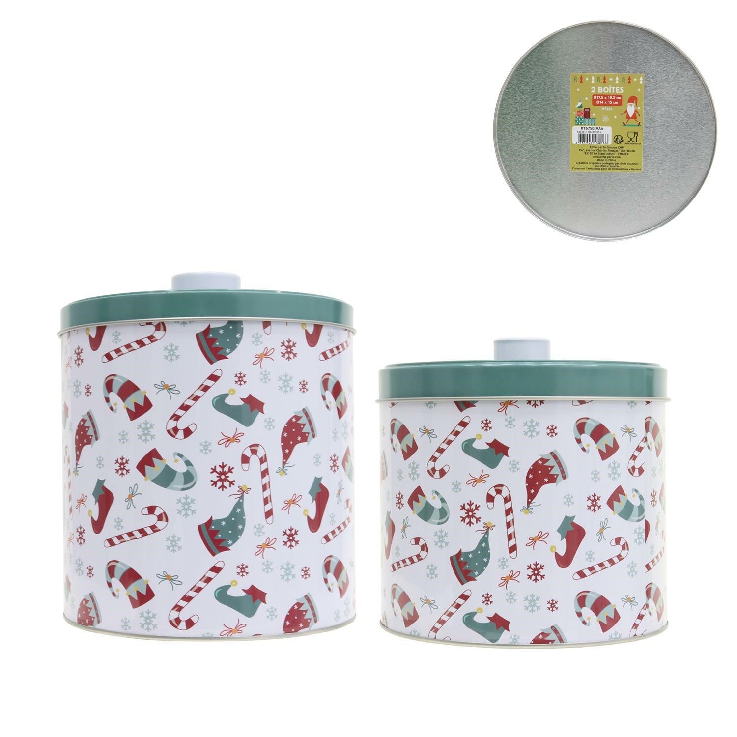 Sada 2 vánočních kovových krabiček bílo/zelené