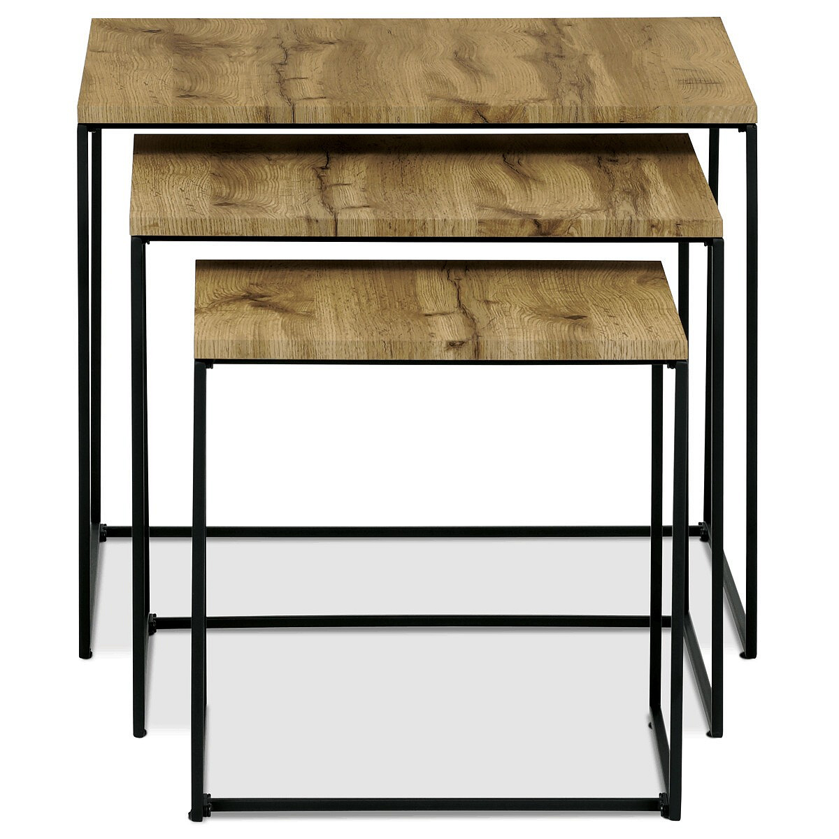 Tato sada tří konferenčních stolků, vyrobená uznávanou značkou Autronic, se stává nezbytným doplňkem každého prostoru, který si potrpí na styl i praktičnost. Díky robustní desce ze středně husté dřevovláknité desky (MDF) zdobené dubovým dekorem vnese tato sestava do obývacích pokojů, kanceláří nebo konferenčních prostor hřejivou a příjemnou atmosféru. Čtvercový tvar horní desky elegantně vyvažuje industriální estetiku s univerzálností, takže je ideální volbou pro různé motivy interiéru.