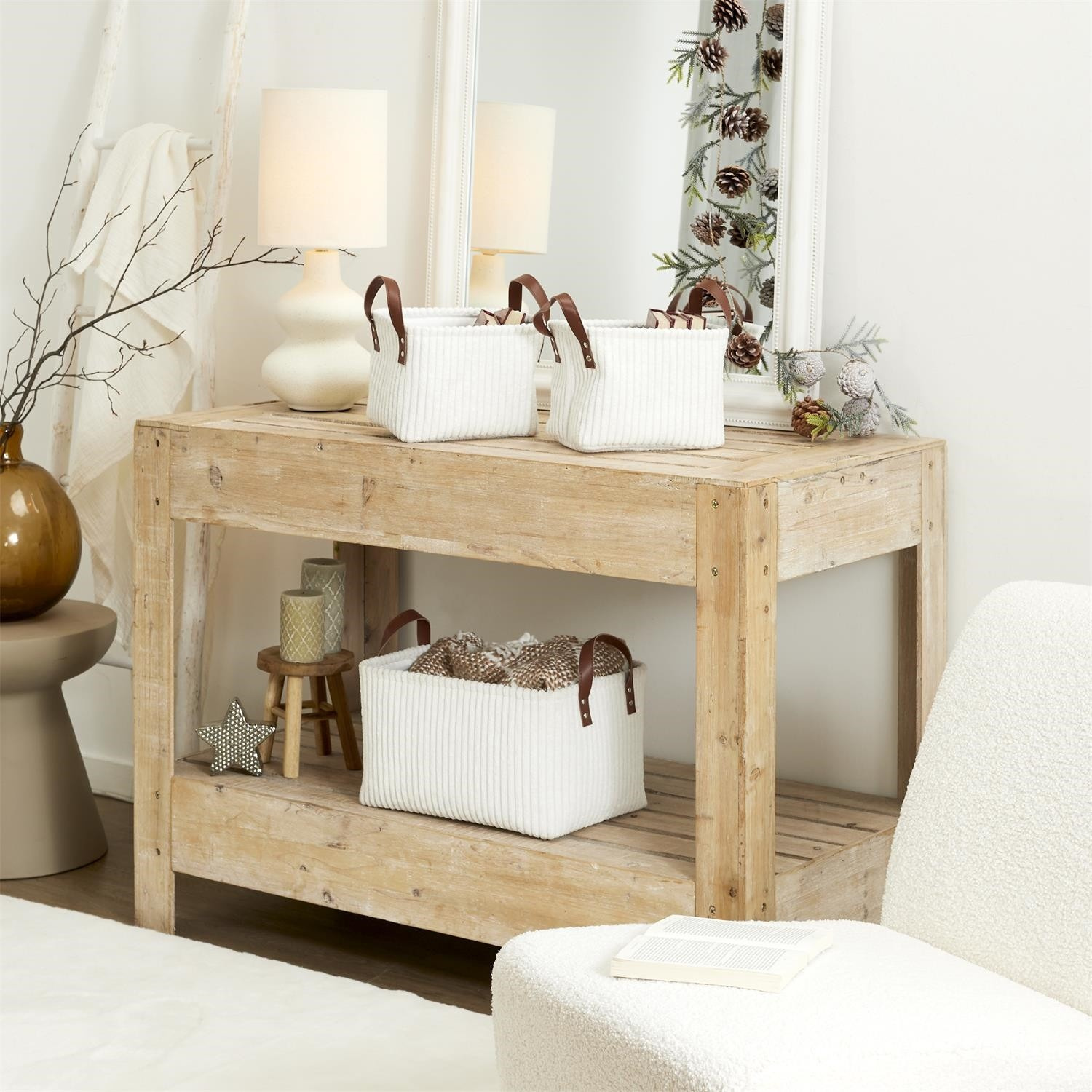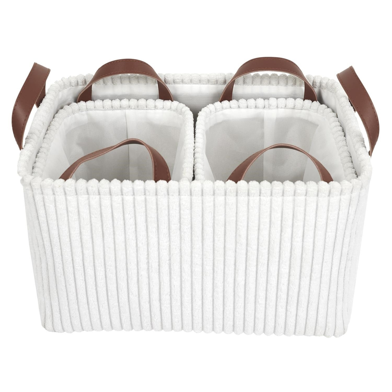 Sada 3 košů z manšestrové tkaniny je ideální dekorací i prvkem pro organizaci prostoru. Rozměry velkého koše: 20x36x26cm a dva menší o rozměru 16x24x19cm