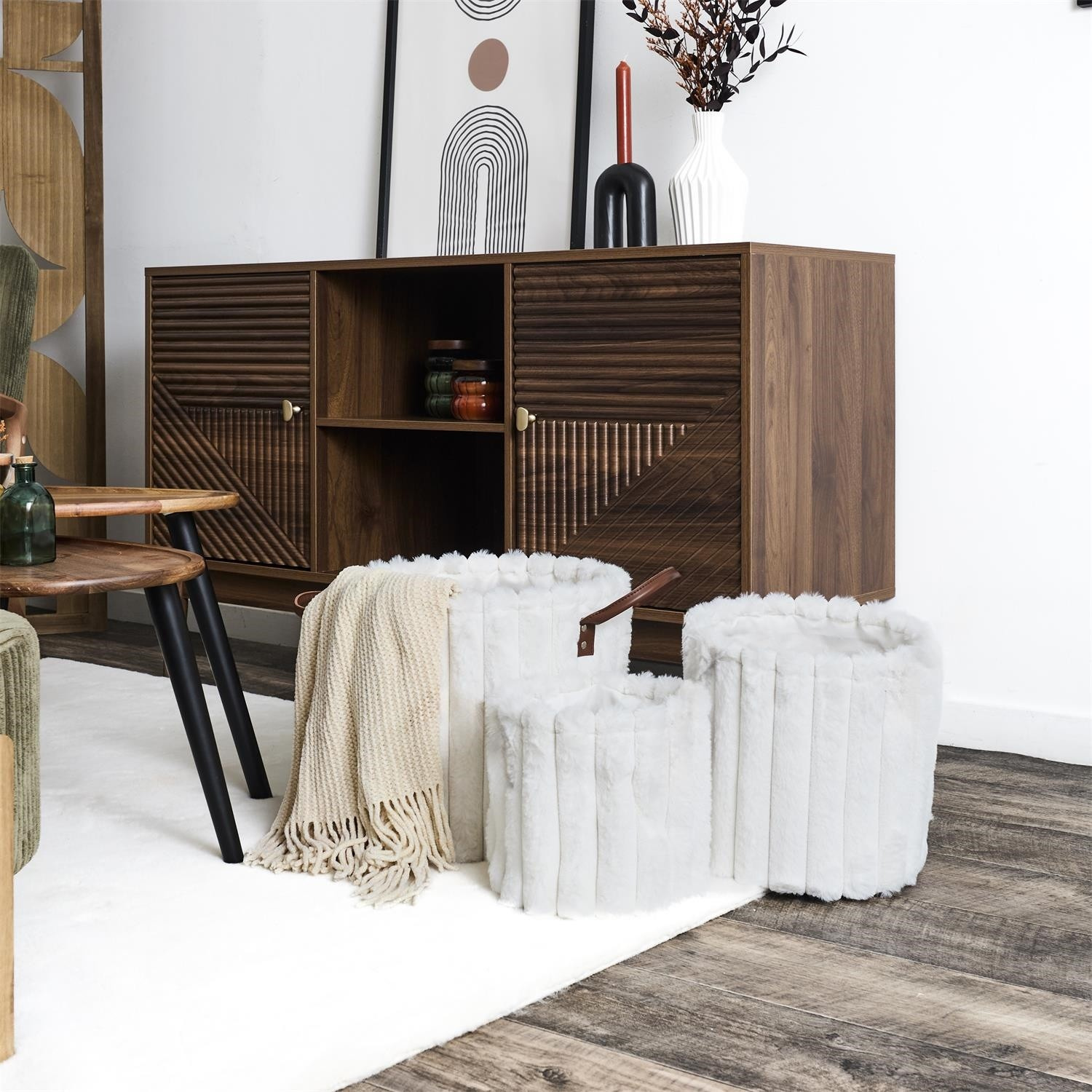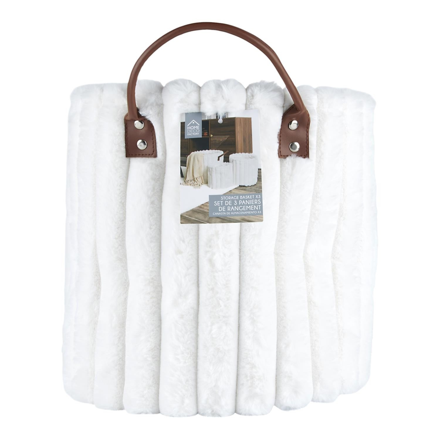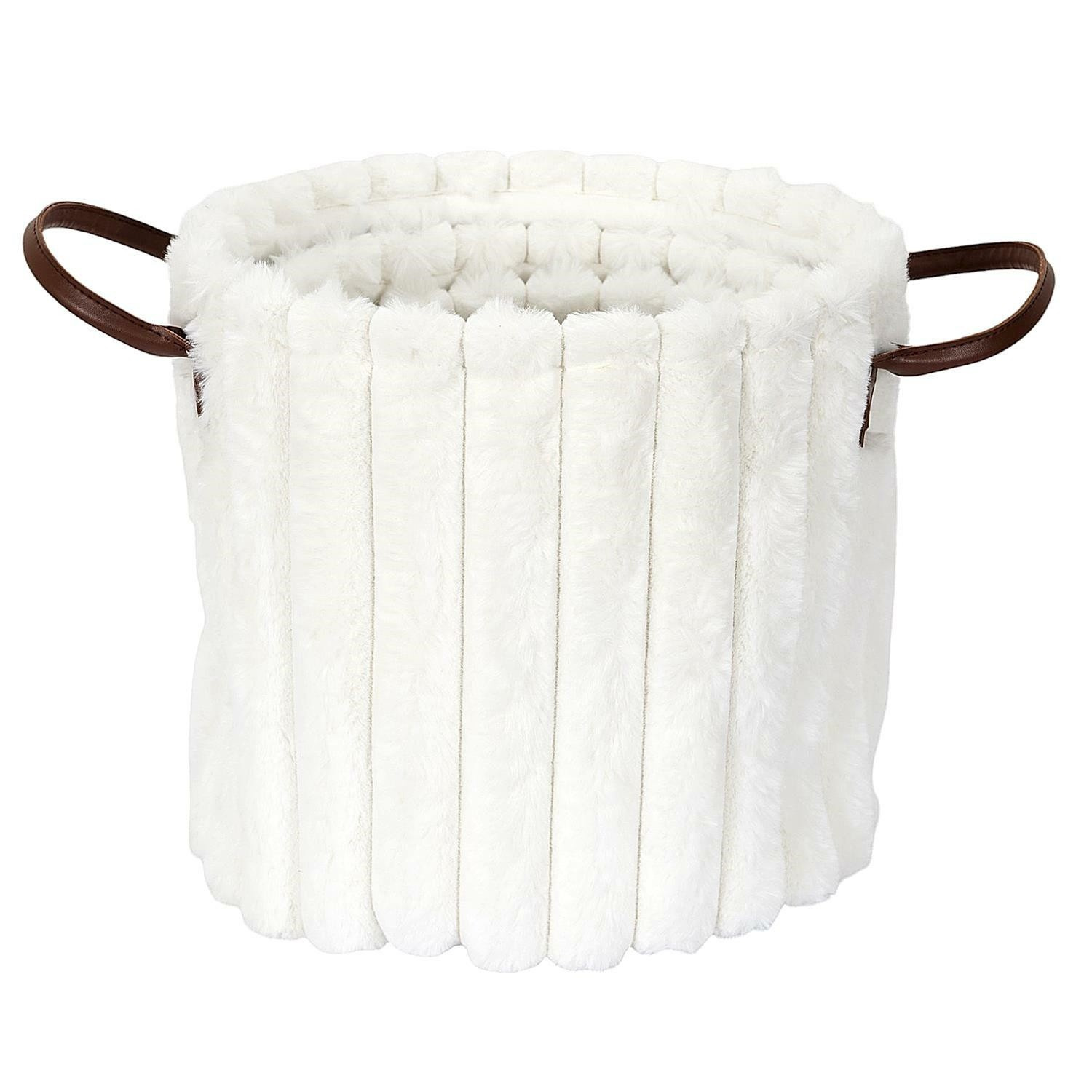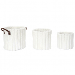 Sada 3 košů vyrobených z měkké plyšové tkaniny je ideálním doplňkem do obývacího pokoje nebo ložnice. Největší koš o rozměrech 30x30x30 cm je navíc vybaven 2 úchyty z eko kůže v hnědé barvě. Rozměry zbývajících košů jsou: 25x25x25cm a 20x20x20cm Tkanina 100% polyester
