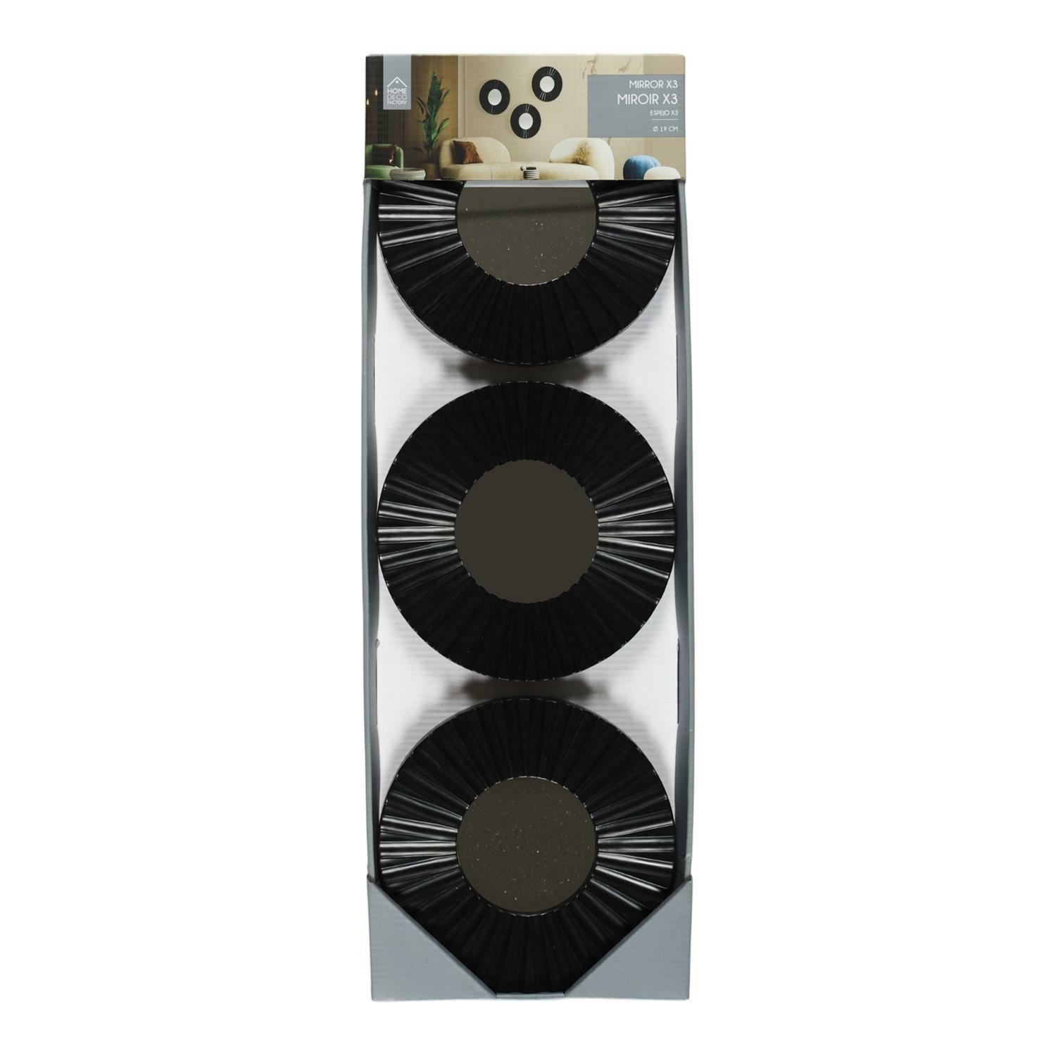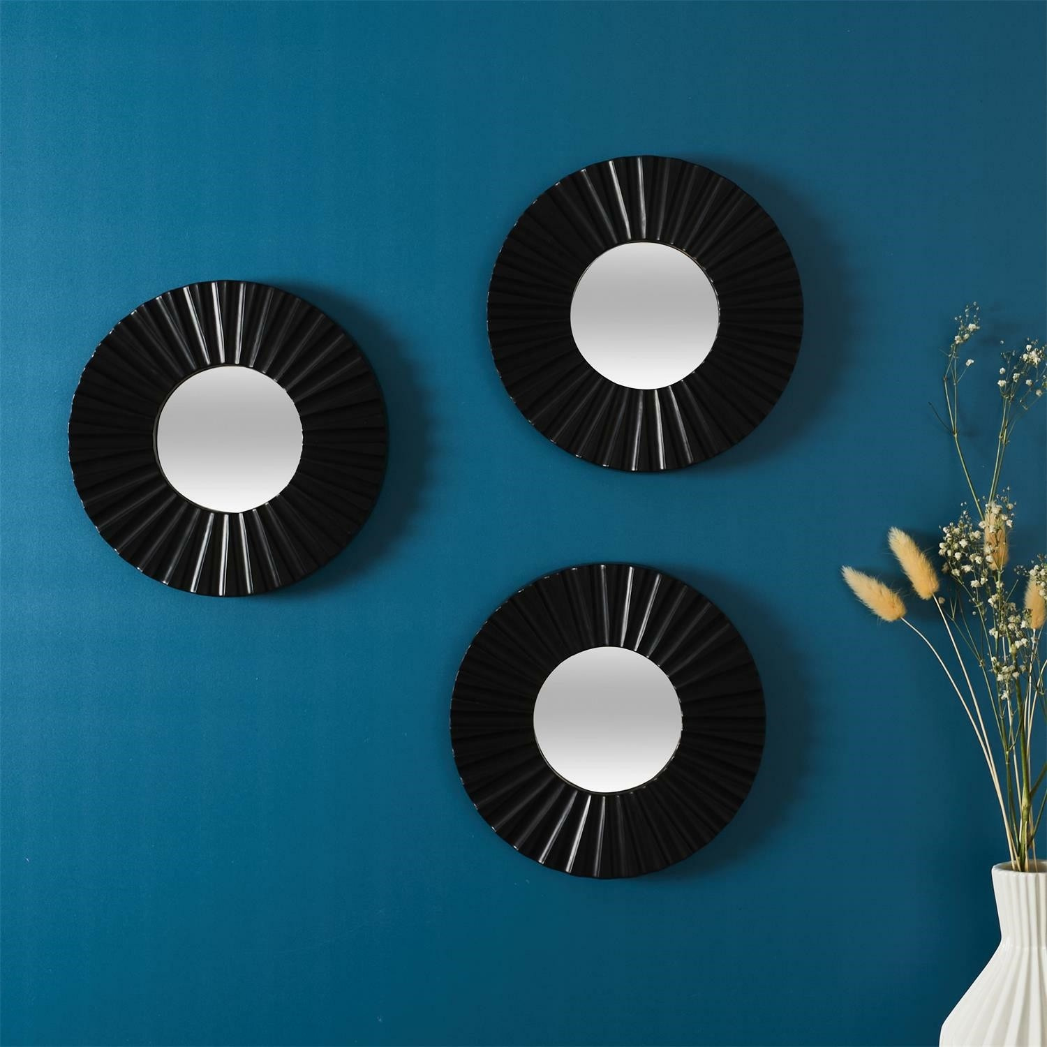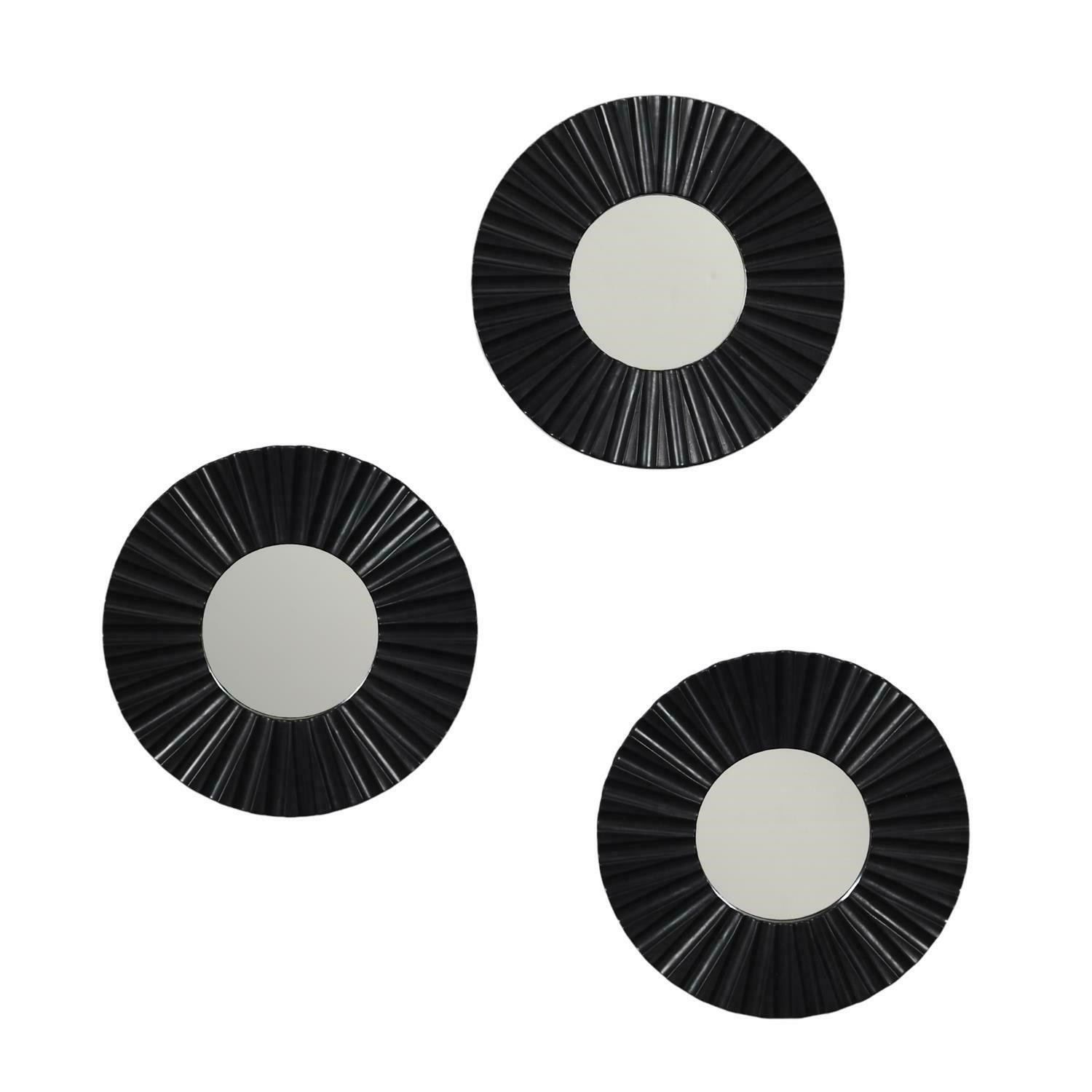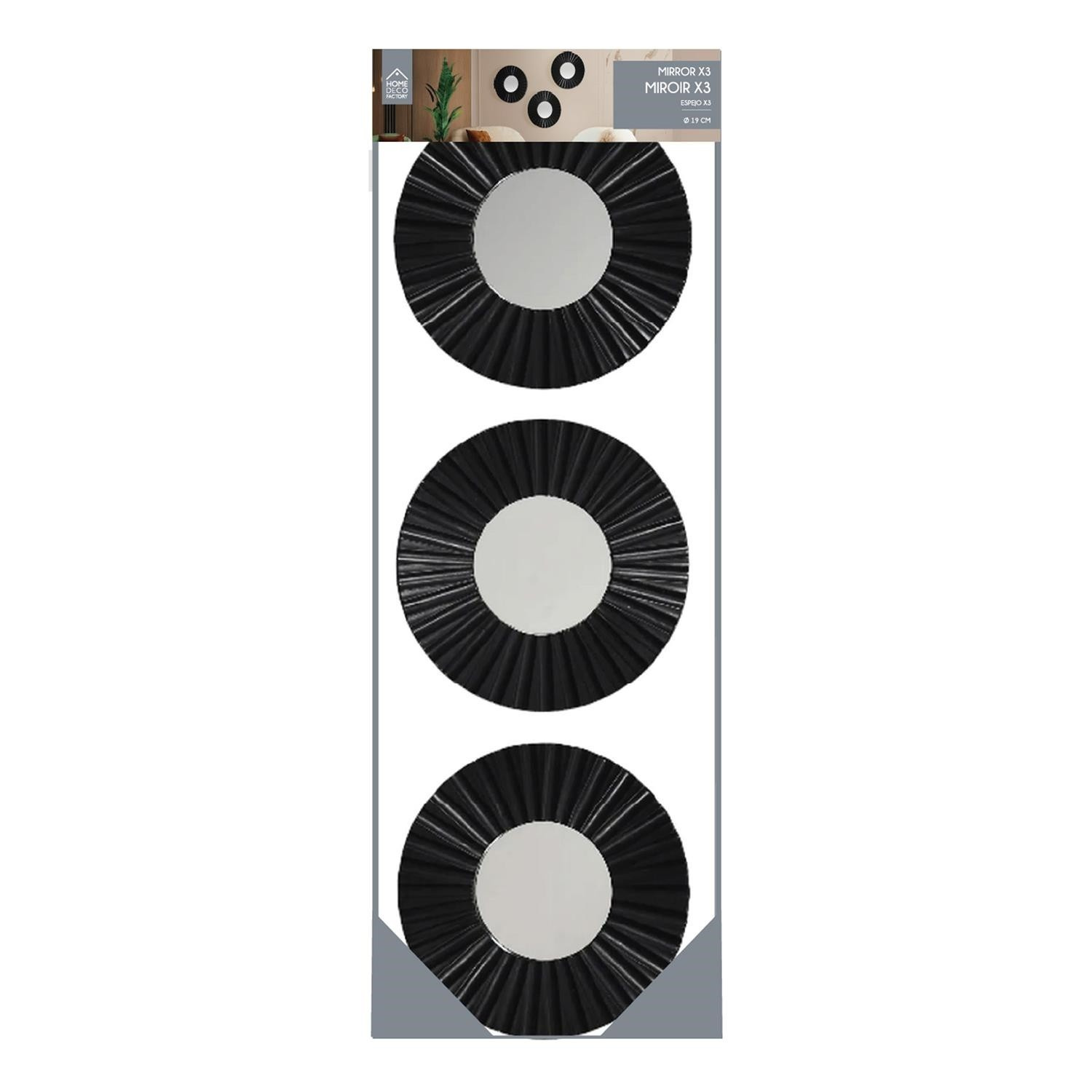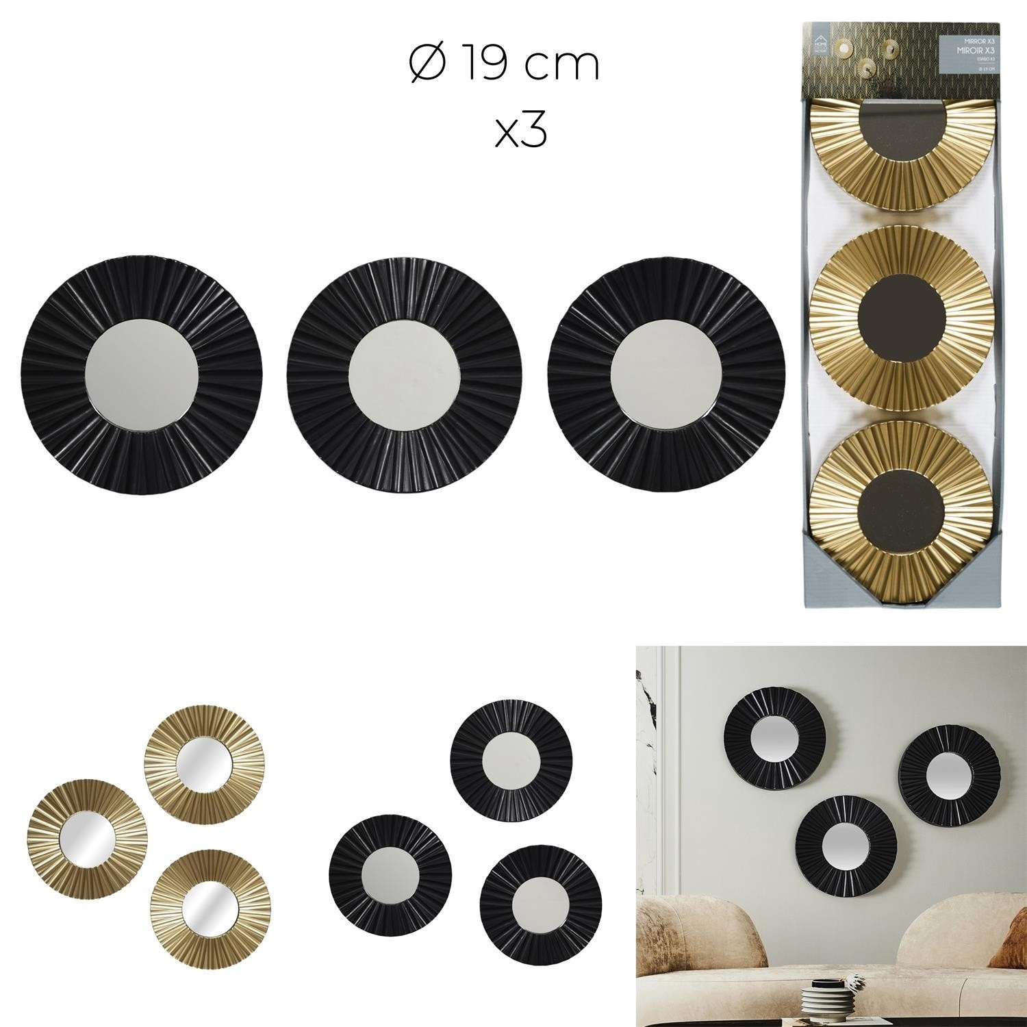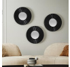 Sada 3 zrcadel o průměru 19 cm je ideální ozdobou stěny obývacího pokoje, ložnice nebo předsíně. Zrcadla se zajímavým, harmonikovým tvarem dodávají místnosti hloubku. sada 3 zrcadel se bude dokonale hodit k květinám a hodinám ve stylu japandi. Zrcadlo vyrobené ze skla, zatímco rám je z plastu. Průměr zrcadla je 10 cm.