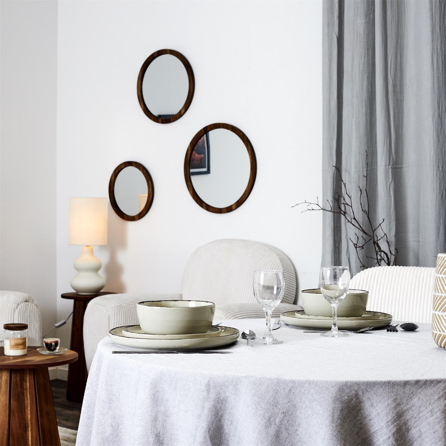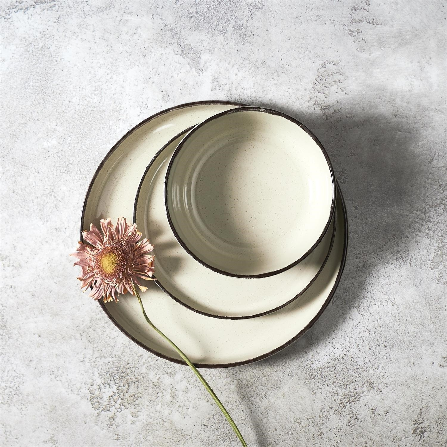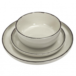 Jídelní souprava Temp je vyrobena z módní kameninové keramiky. Přirozená béžová barva a nepravidelný tvar a textura dodávají soupravě charakter stylu japandi. Sada se skládá ze 4 misek na polévku o objemu 600 ml a rozměrech výška 6,6 cm a průměr 16,5 cm, 4 talířů o průměru 20,5 cm a výšce 2 cm a 4 talířů o průměru 27,3 cm a výšce 2,6 cm. Sada umožní efektně prostřít stůl pro čtyři osoby.