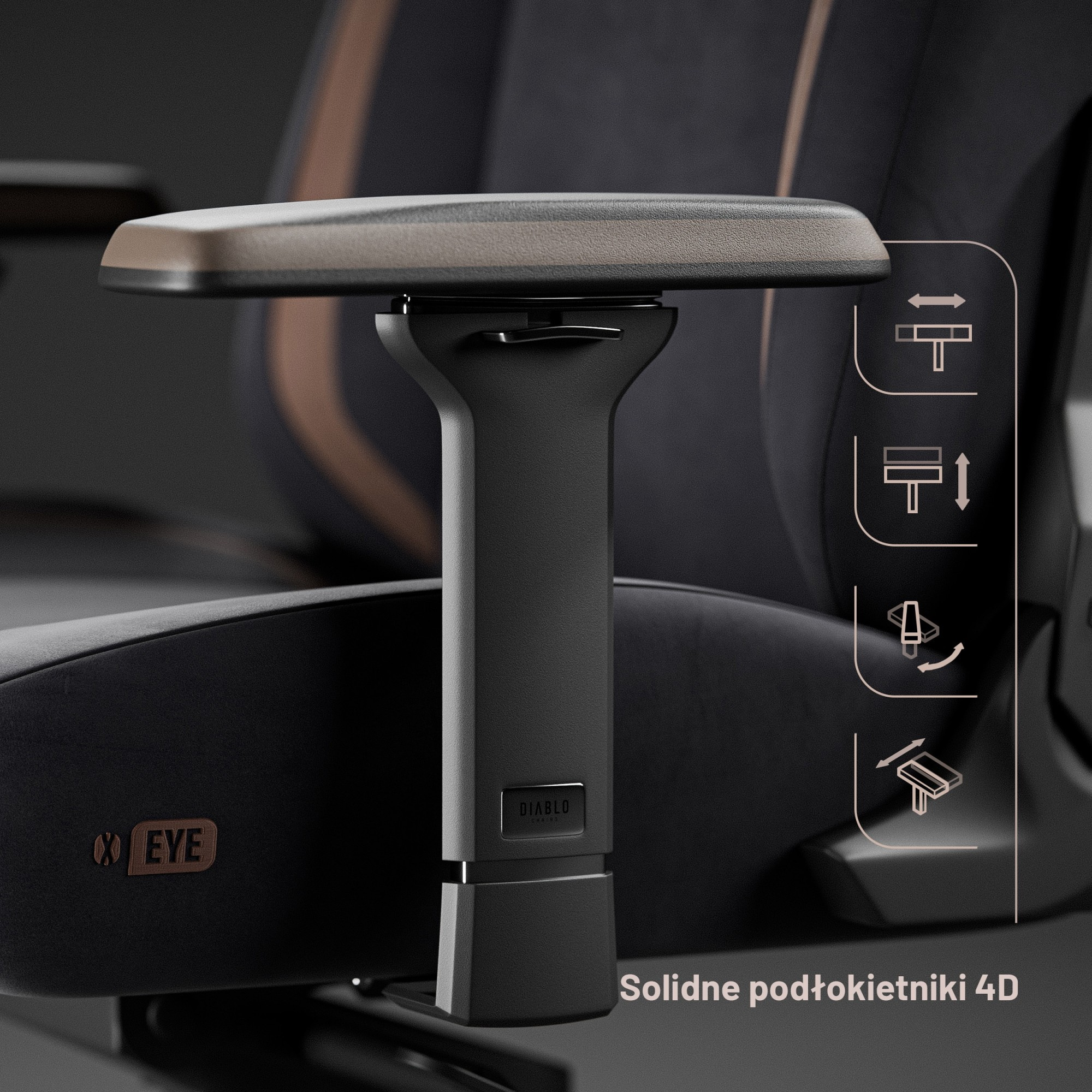 Sestava Herní křeslo X-Eye 2.0: Prodyšné, látkové čalounění Tvar podporující vaši páteř Nastavení bederní opěrky Magnetický opěrák na hlavu Područky nastavitelné ve 4 směrech Spolehlivý mechanismus Tilttech™ Frog Maximální zatížení do 140 kg Sling bag Diablo: Malý, ale mimořádně prostorný Voděodolný 11 praktických přihrádek Jedinečný design Diablo Možnost změny strany popruhu Zámek mini lock Měkké zakončení vzadu pro pohodlí při nošení Herní křeslo DIABLO X-EYE 2.0 NORMAL SIZE: SOFT BLACK Přes den si sedáš k pracovnímu stolu, upravuješ si košili a připojuješ se na dálku ke schůzce, a večer se sluchátky na uších se přihlašuješ do úplně jiné reality. Dva různé světy spojuje jedno křeslo. Diablo X-Eye 2.0 je ztělesněním kancelářské elegance, precizního zpracování, špičkové technologie a pohodlí sezení, díky nimž zůstaneš v každé podobě plně sám sebou.MATERIÁLOVÉ Herní křeslo Aby tvoje křeslo X-Eye 2.0 zajistil nepřetržitý komfort při dlouhém sezení, a to i v tropických podmínkách, ale také se skvěle prezentoval během videokonferencí, rozhodli jsme se pro vynikající látku Supersoft od uznávané značky Elastron. Tlumená, tmavá barevnost je rozhodně plusem, a k tomu přidej ještě pohodlí používáníX-EYE ROZUMÍ TVÝM POTŘEBÁM Díky modernímu, spolehlivému mechanismu Tilttech™ Frog a Tilttech™ Gear herní židle X-Eye 2.0 dovedně odpovídá na všechny vaše potřeby.Měníš polohu, sedíš v tureckém sedu? S funkcí Tilttech™ Lift přizpůsobíte výšku sedadla svým preferencím. Tilttech™ Swing ti umožní houpání. Náklon křesla zablokujete v 5 polohách.Když pracuješ, sedíš rovně, ale když hraješ, preferuješ pololežící pozici? Opěradlo X-Eye se naklání až do 170° s možností zablokování v každém bodě.PRO TVOJI SVOBODU SEZENÍ Stejně jako neexistuje jedno využití křesla Diablo X-Eye 2.0, takže nemusíš mít pouze jednu pozici při sezení. Jeho tvar podporuje, ale také poskytuje plnou svobodu. Jemně profilované bočnice sedáku a opěradlo s unikátním tvarem umožňují zaujmout pozici, kterou právě teď nejvíce potřebujete, ať už plníte úkoly v práci, nebo hrajete nejnovější hru.VIDĚT ROZDÍL, CÍTIT ROZDÍL Okouzlující, do nejmenšího detailu perfektní konstrukce herního křesla X-Eye 2.To je zásluha nejvyšší kvality technologie Full Mould. Výplň z HR pěny je zcela vyrobena ve speciální formě pro tento model. V důsledku toho je Diablo X-Eye ještě pohodlnější, elegantnější a zároveň maximálně odolný.ZAŽIJ MAXIMÁLNÍ PŘESNOST Rychlost, přesnost a nejvyšší úroveň podpory - tak lze ve zkratce popsat opěrku hlavy v Diablo X-Eye 2.0. Magnetický systém uchycení výrazně rozšiřuje rozsah přizpůsobení a pěna Memory Foam, která se přizpůsobuje vašim potřebám, ideálně stabilizuje krk a hlavu. Diablo Chairs dbá o nejmenší detail, proto tvar a vzhled polštáře skvěle ladí s konstrukcí herního křesla.TECHNOLOGICKÁ PODPORA PÁTEŘE Uvnitř Diablo X-Eye se skrývá inovativní technologie, díky které dosáhnete plného komfortu i bez dodatečného polštáře. Pohodlné kolečko umístěné na boku křesla vám umožní plynule měnit úroveň opory pro dolní bederní část. S mechanismem ProSpine Support™ pocítíš, jako by herní židle X-Eye 2.0 bylo vytvořeno speciálně pro tebe.STABILITA, KTERÁ VEDE K POHODLÍ Když se pracovní místo změní na herní stanici, před obrazovkou můžeš strávit více než půl dne. Správné nastavení područek Armtech™ Quatro Premium a měkké provedení SoftTouch ti umožní vyhnout se napětí v ramenou, pažích nebo zápěstích. Rozsáhlá regulace ve 4 směrech je stejně uspokojivá jako kvalita provedení. Konstrukce područek je celá vyrobena z kovu.POSUŇ SE VPŘED BEZ ODPORU Píst třídy 4, elegantní černá kovová základna a designová kolečka tvoří pevný základ pro Diablo X-Eye 2.0, která zvyšuje maximální zatížení křesla až na 140 kg. Netypická kolečka nejenže mají za úkol udělat dojem na vaše přátele, ale také díky velkému průměru (60 mm) a kaučukovému povrchu tlumí hluk a usnadňují pohyb, a navíc chrání podlahu před poškrábáním.