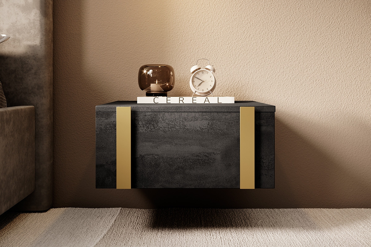 Sada závěsných nočních stolků Verica 2 ks. - černý beton / zlaté úchyty, Šířka: 50, Výška: 23, Hloubka: 45, Výška nožek: , Montáž: