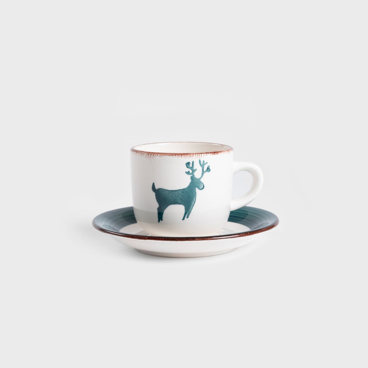 Šálek s podšálkem 250 ml s modrým designem jelena