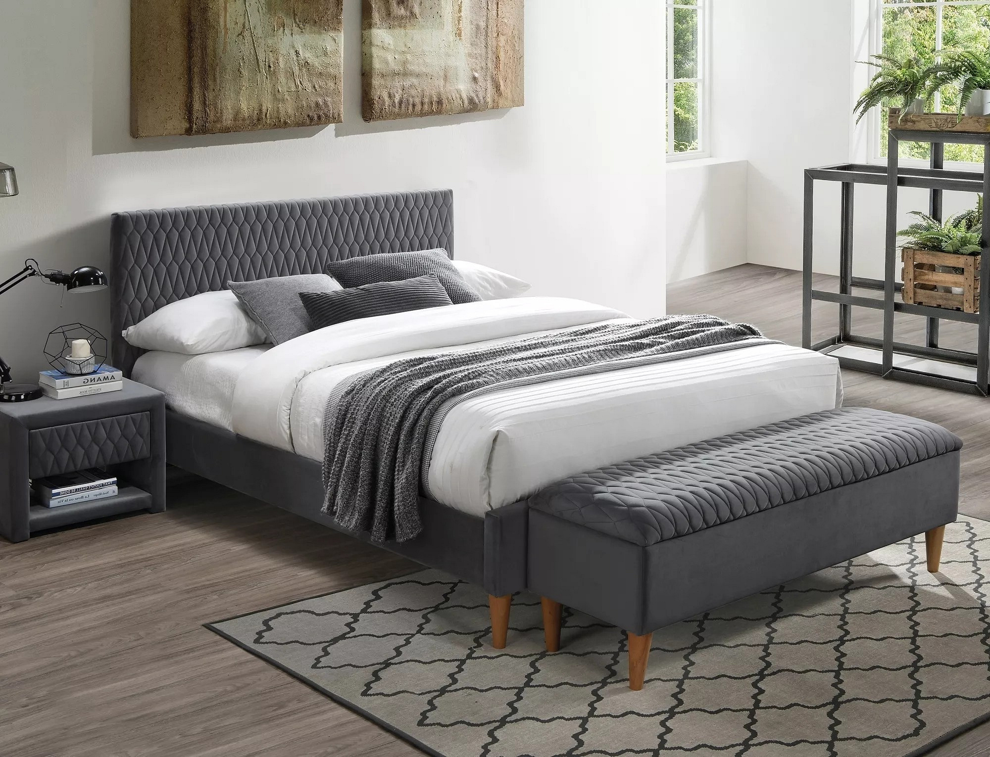 Postel AZURRO Velvet, 160x200 cm, šedý Bluvel 14/dub