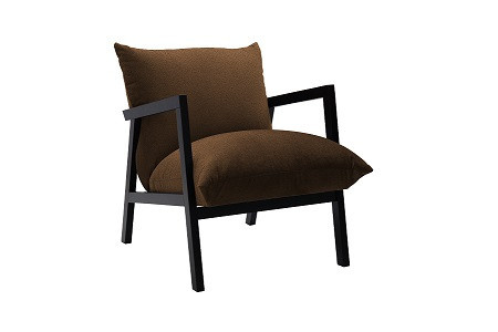 Křeslo Sasanka, látka tmavě hnědá ASTON 4, područky MASIV BUK kolekce "GB"