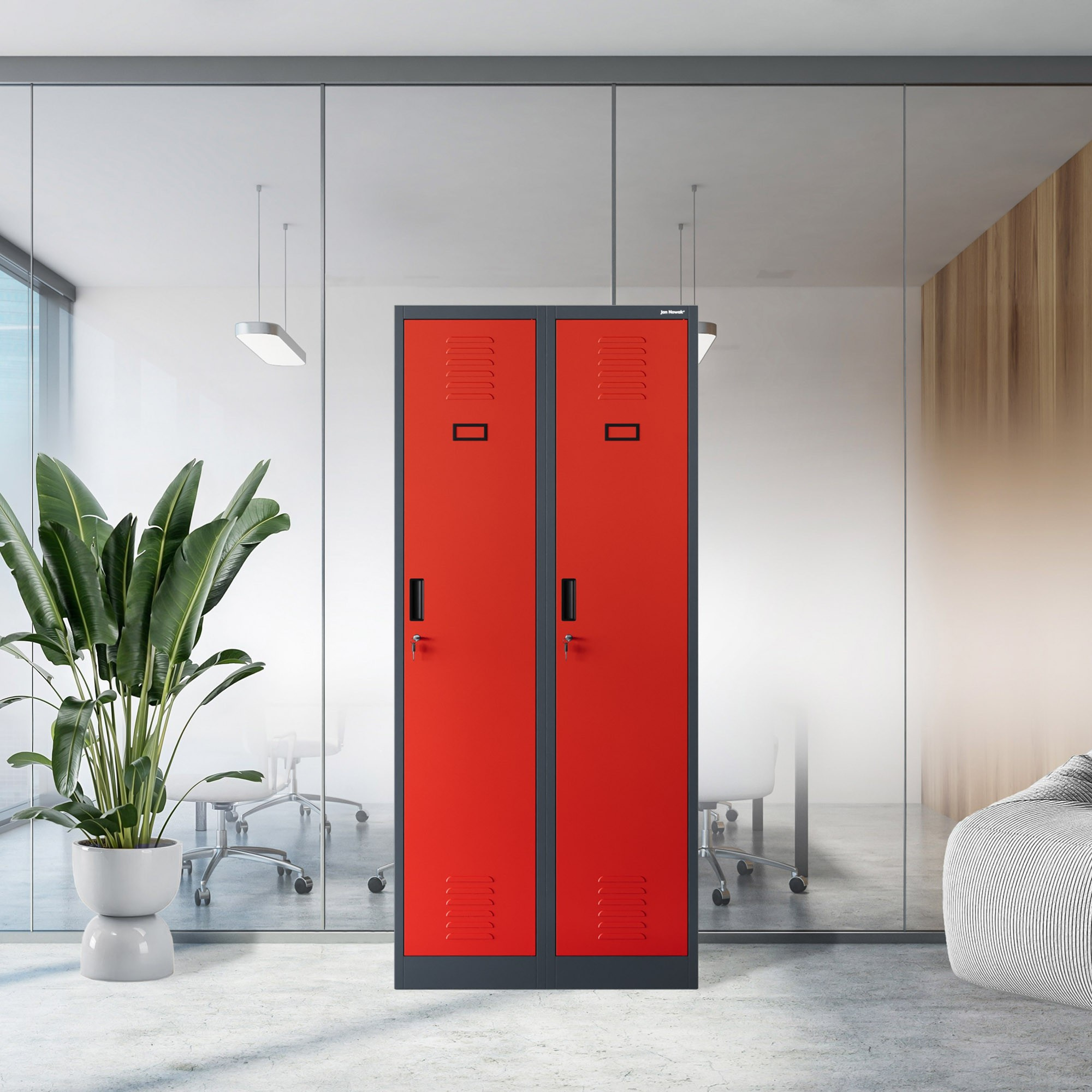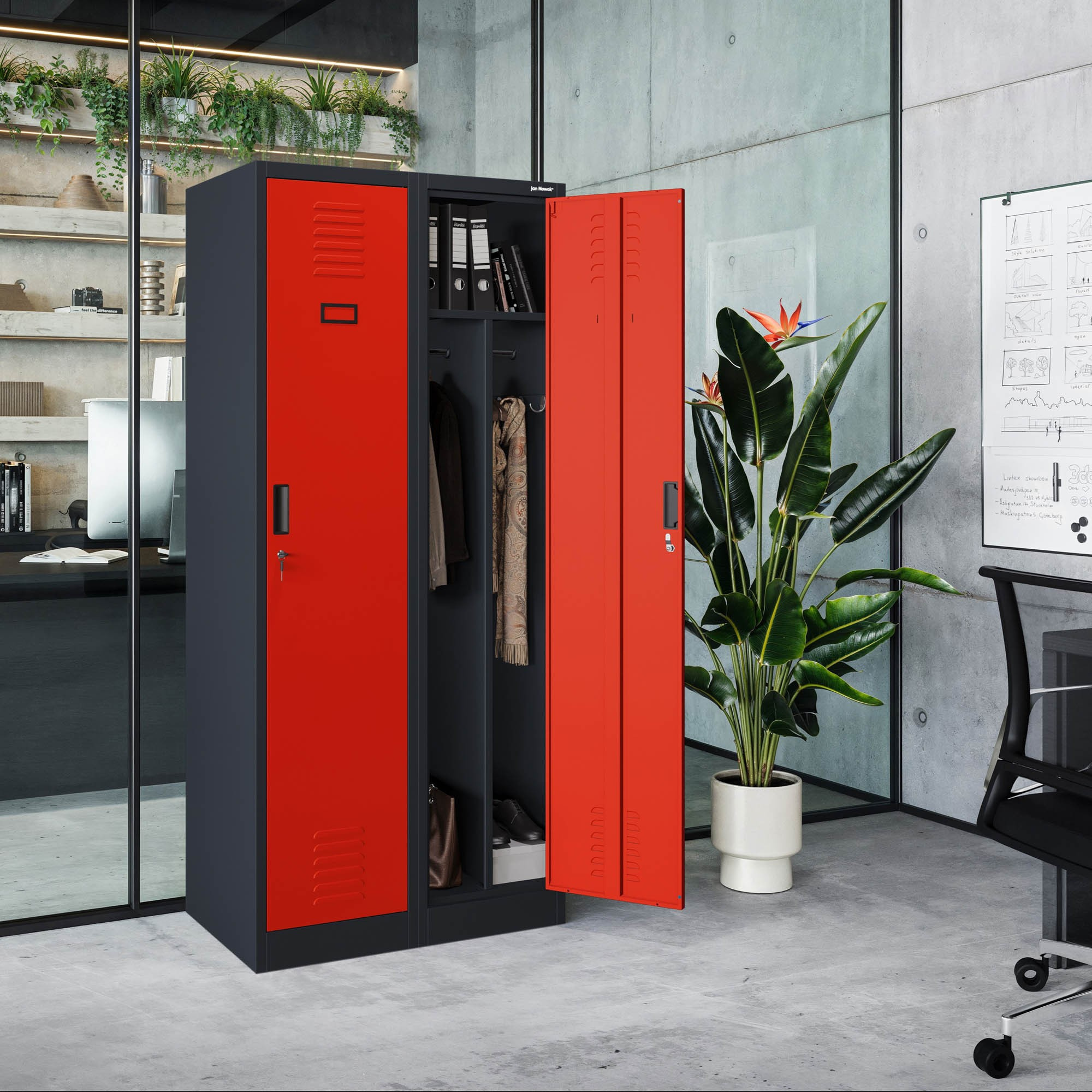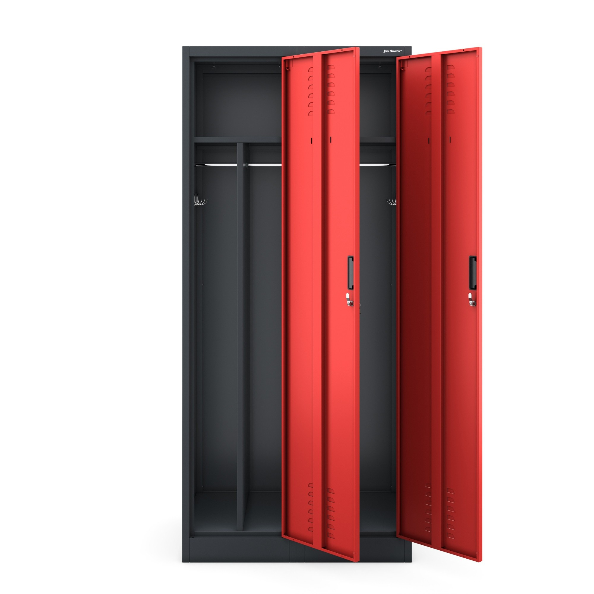 Kovová šatní skříň antracitovo-červená: čtyřkomorová KACPER, 800 x 1800 x 500 mm