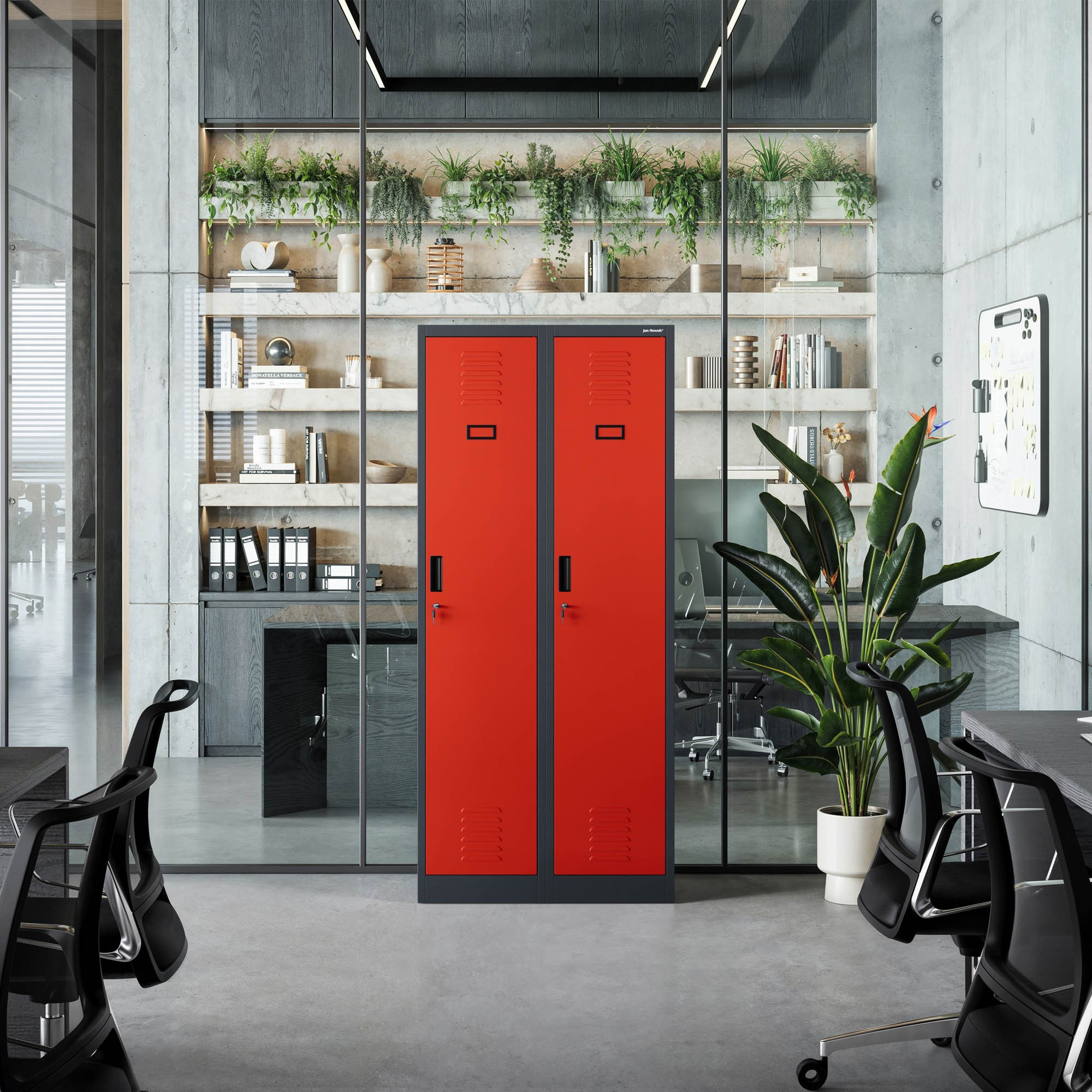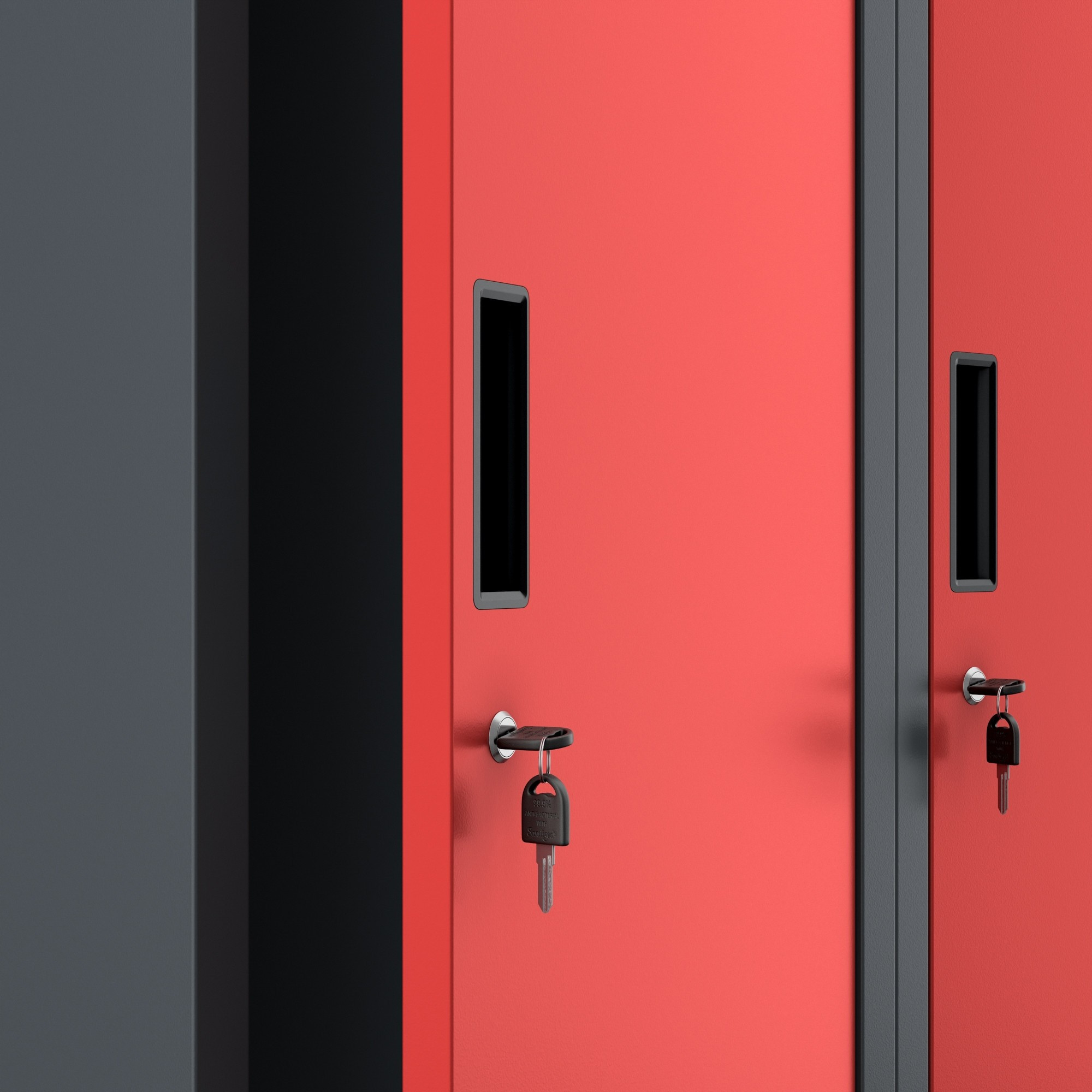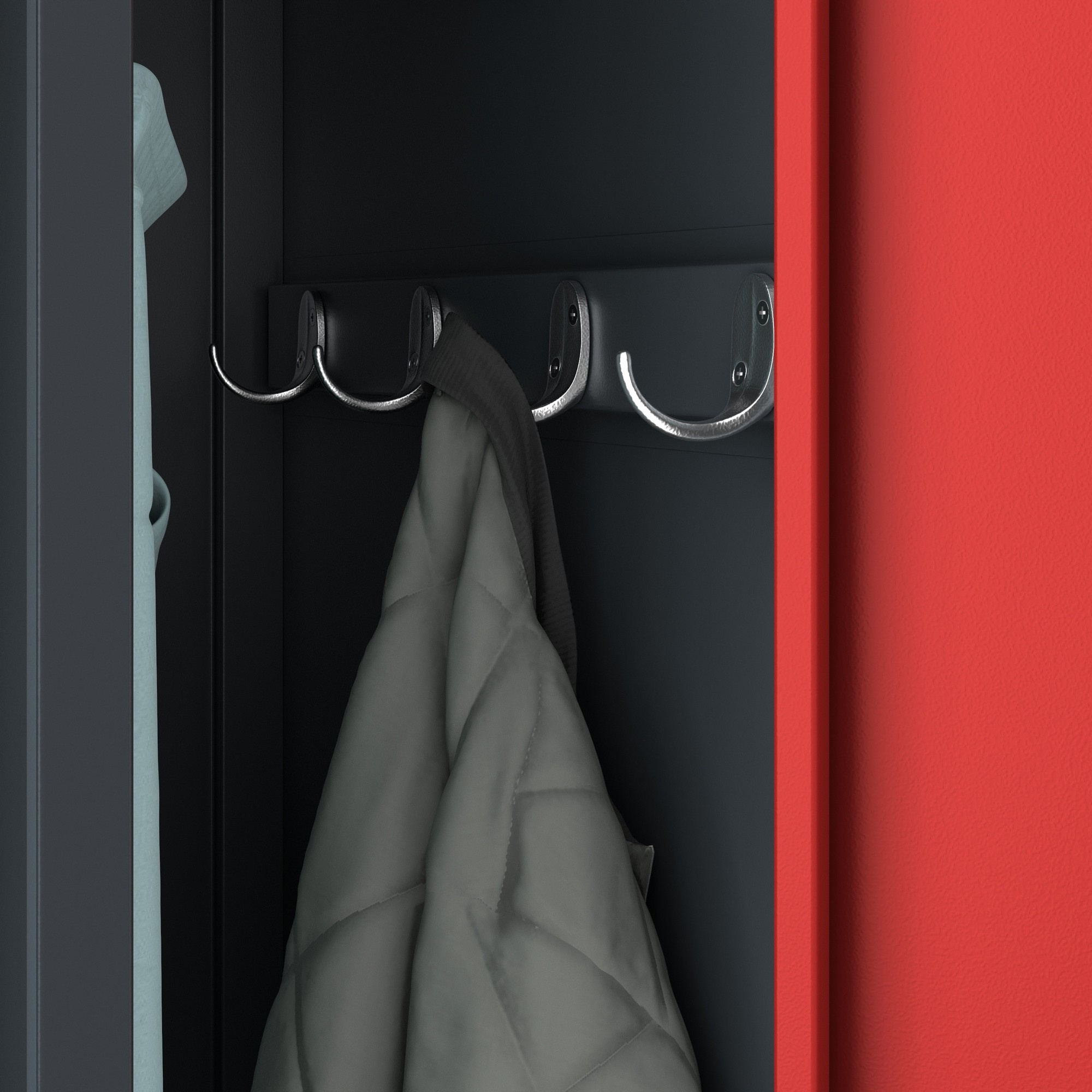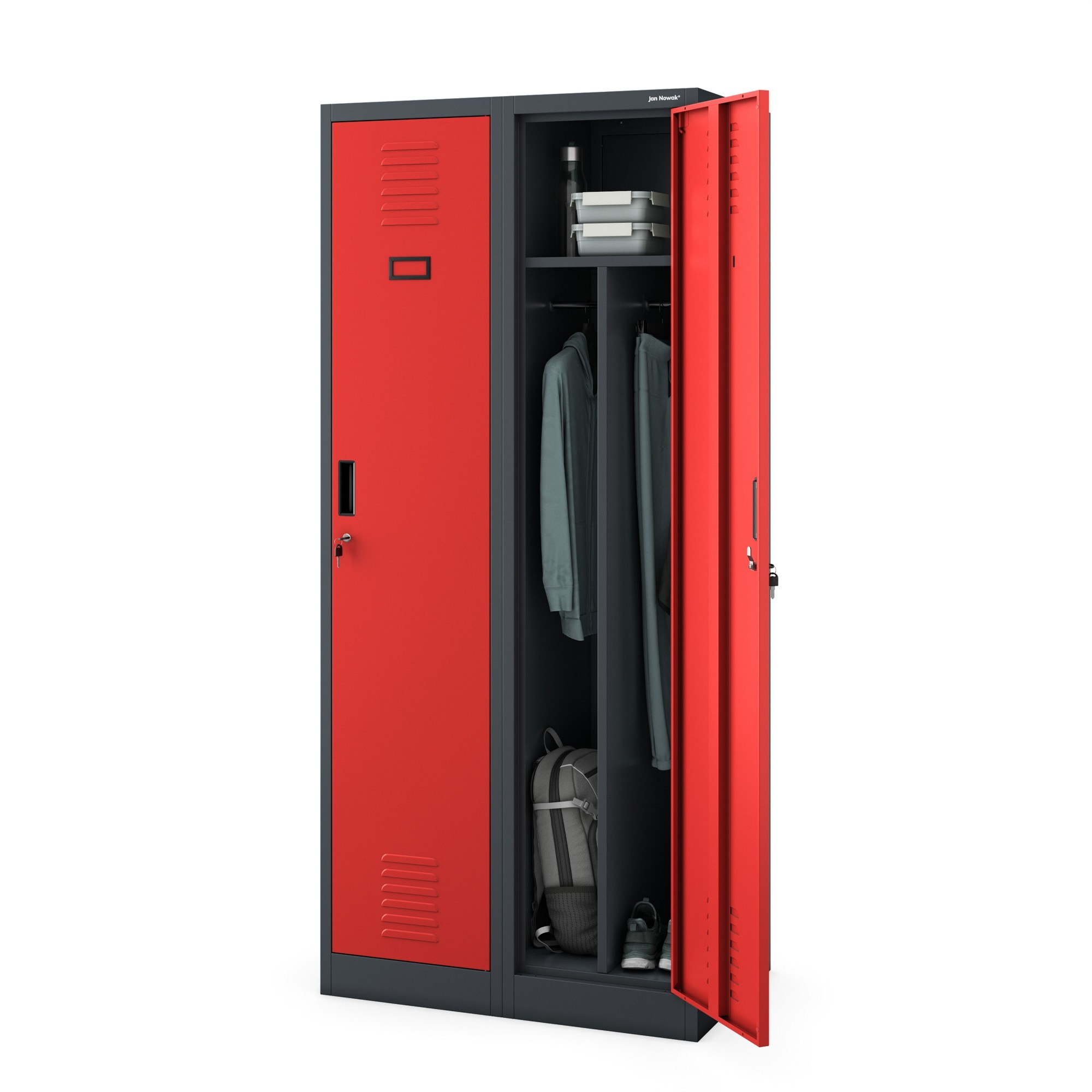 Kovová šatní skříň antracitovo-červená: čtyřkomorová KACPER, 800 x 1800 x 500 mm