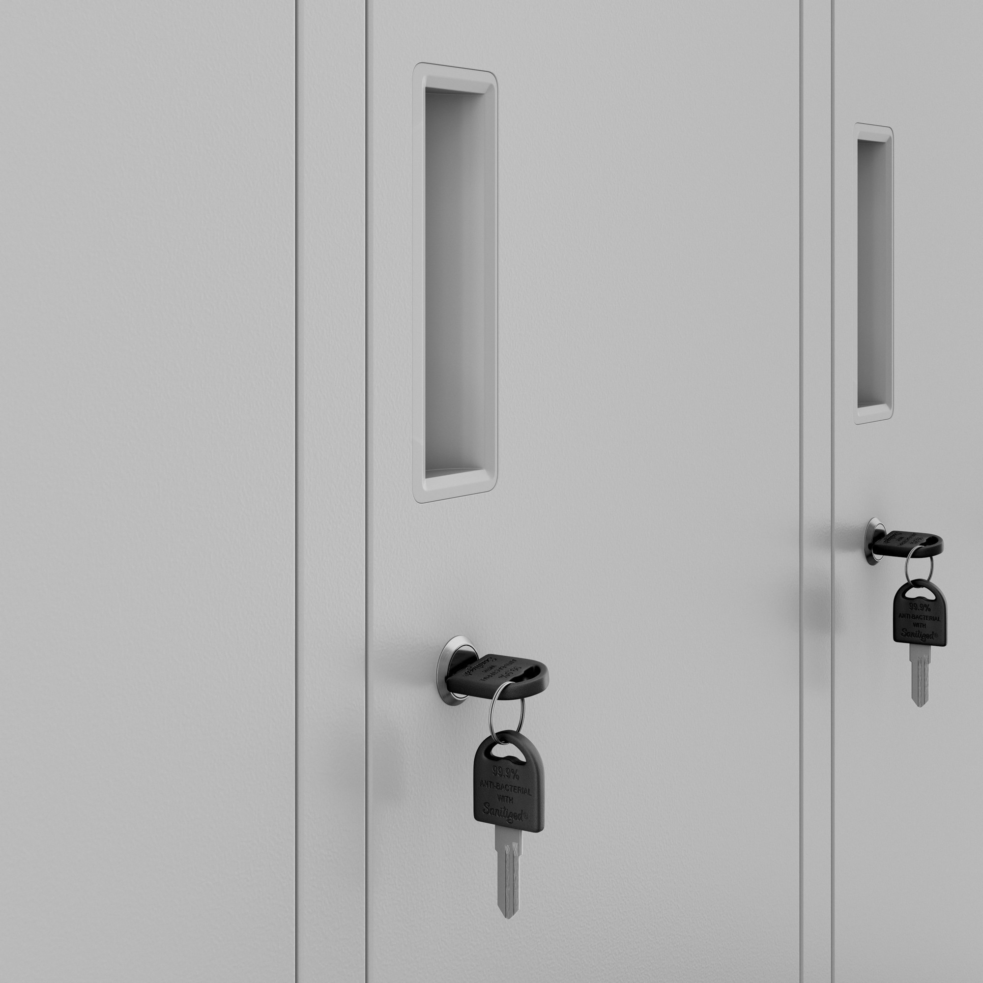 Šedá sociální skříň model BARTEK - skříň BHP na oděvy s 10 dveřmi, do dílny, do firmy BARTEK – kovová sociální skříň Sociální skříň BARTEK je jeden kus nábytku, který zaručí plnou bezpečnost uložení až deseti osobám. Vybavte společenskou místnost mimořádně kompaktní skříňkou s přihrádkami a zajistěte svým zaměstnancům nebo klientům plný komfort používání. Skříňka BARTEK má mnoho využití: díky vysoké odolnosti se osvědčí v autoservisech a výrobních závodech, díky elegantnímu designu se skvěle hodí do hotelů, posiloven, fitness klubů, kosmetických salonů, je také určena pro školy, nemocnice, ordinace nebo bazény. Hluboké skříňky uzamykatelné na klíč umožňují bezpečné uložení oblečení, pracovního oděvu, nářadí, osobních předmětů a dokumentů. Univerzální sociální skříň BARTEK – jeden nábytek, spousta výhod Sociální skříň BARTEK je kompaktní produkt vytvořený s ohledem na hospodářské a komerční prostory. Díky svým rozměrům se hodí jak do prostor s velkou plochou, tak i do těch malých, kde je cenné ušetřit co nejvíce místa. Nábytek byl vyroben z ocelového plechu o tloušťce 0,6 mm, lakovaného práškovou barvou. Má vysokou odolnost proti mechanickému poškození, což je obzvláště důležité při neustálém provozu. Model BARTEK je vybaven 10 prostornými skříňkami uzamykatelnými na klíč, což umožňuje ukládat kromě nástrojů, oblečení či osobních předmětů také nejdůležitější dokumenty - v souladu s požadavky GDPR 2018. Sociální skříň BARTEK má ventilační otvory, které zajišťují správnou cirkulaci vzduchu uvnitř skříněk. • NEJVYŠŠÍ KVALITA - vyrobeno z tlustého ocelového plechu, má mimořádně stabilní konstrukci • INTELIGENTNÍ PROSTOR - šířka skříně je pouhých 136 cm, přesto pojme oblečení nebo osobní věci až deseti osob • PLNÁ CIRKULACE - sociální skříň BARTEK má ventilační otvory zajišťující správnou cirkulaci vzduchu uvnitř schránek, díky čemuž účinně chrání před vlhkostí uložené předměty a oblečení • POHODLNÉ SKLADOVÁNÍ - každá skříňka má zabudovanou tyč, na kterou lze zavěsit další ramínka • ZÁRUKA BEZPEČNOSTI - schránky jsou uzamykatelné silnými, zajištěnými zámky Sociální skříň BARTEK – technické údaje Rozměry: • Hmotnost (včetně balení): 66 kg • Barva: šedá RAL 7035 • Výška: 172 cm • Šířka: 136 cm • Hloubka: 45 cm Rozměry schránky: 4 sloupce (počítáno od levého okraje skříňky): Výška 77,6 cm Šířka 26,5 cm Hloubka 45,0 cm 1 sloupec: Výška 77,6 cm Šířka 29,0 cm Hloubka 45,0 cm S námi získáte více! • Záruka kvality! • Výjimečně výhodná cena a nejvyšší kvalita • Soulad s předpisy GDPR 2018 • Skříň má certifikát PZH Stojí za to vědět: • Doprava již od 125 Kč • Jednoduchá, rychlá, samostatná montáž • Přehledný návod v balení Značka – jeden z největších distributorů kovových skříní v celé Evropě.
