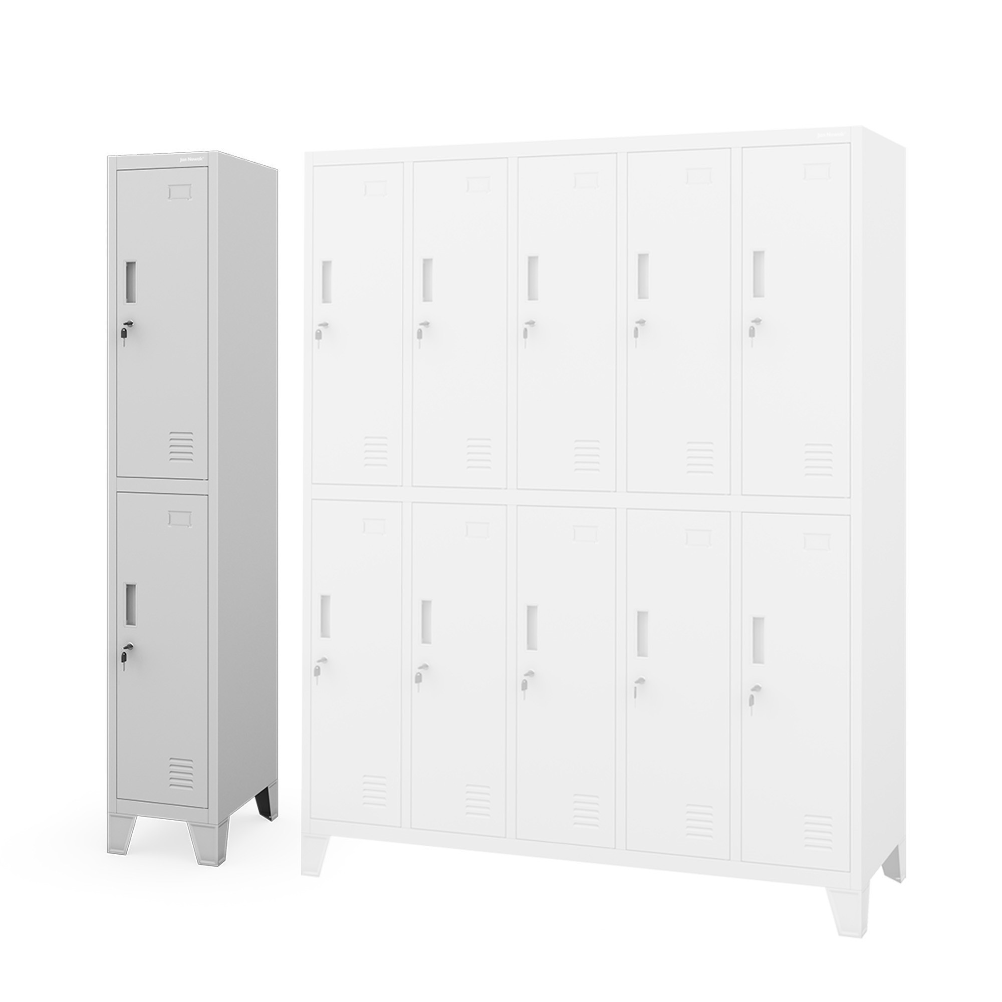 - Větrací otvory a jmenovky na dveřích: Zajišťují cirkulaci vzduchu a snadnou identifikaci skříňky.