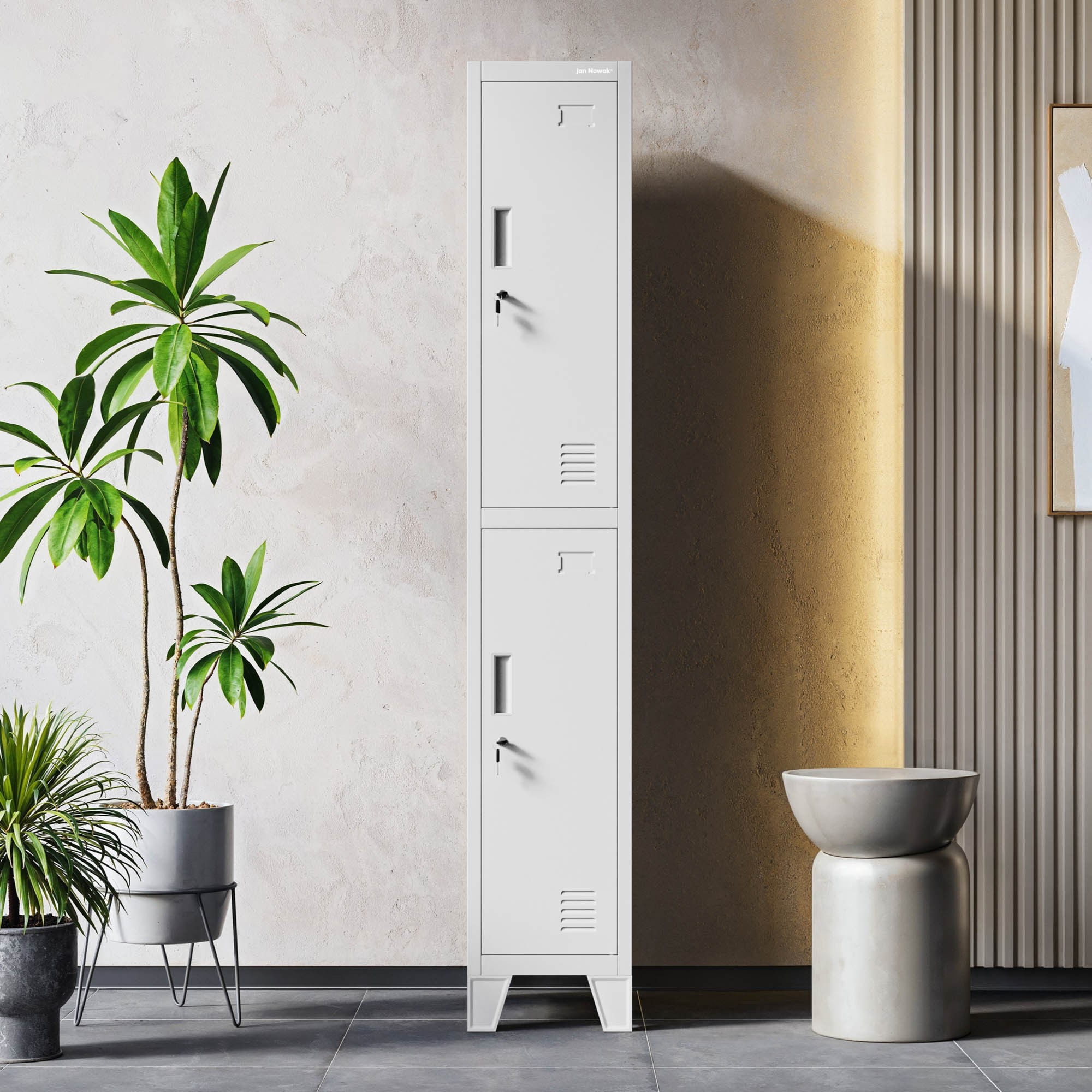 Skříňku lze snadno připevnit ke zdi, což eliminuje riziko převrácení a zvyšuje bezpečnost. S BARTEK 1 Plus získáte nejen úložný prostor, ale také jistotu, že vaše šatna bude vybavena nábytkem, který je stabilní, bezpečný a odolný.