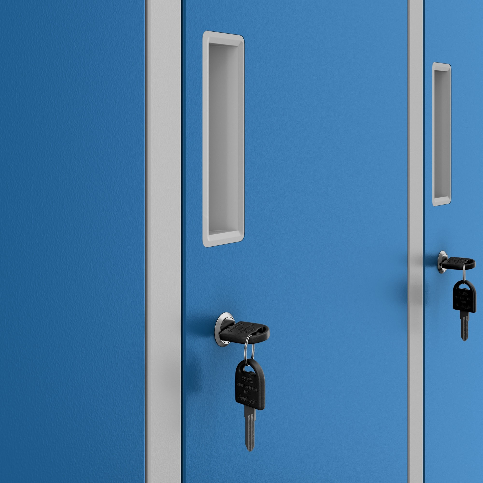 Šedo-modrá sociální skříň model IGOR - skříňka BHP na oděvy 6-dveřová, do dílny, do školy, do šatny IGOR – kovová sociální skříň Sociální skříň IGOR je nábytek navržený s ohledem na malé prostory. Má pouhých 90 cm na šířku, ale obsahuje až 6 samostatných, uzamykatelných schránek na oblečení, osobní věci nebo dokumenty. Navíc má každá ze skříněk individuální jmenovku, což činí každodenní používání mimořádně efektivním. Doporučujeme naši skříňku pro následující použití: osvědčí se v šatnách škol, dílen, stavebních firem nebo výrobních závodů vyráběná s ohledem na hotely, fitness kluby, nemocnice, ordinace prostorné, uzamykatelné skříňky umožňují bezpečně ukládat oblečení, pracovní oděvy, nástroje, osobní předměty a dokumenty. Moderní sociální skříň IGOR – pevná a bezpečná Sociální skříň IGOR je produkt kompaktních rozměrů navržený s ohledem na malé šatny. Dokonale se hodí všude tam, kde není místo na nábytek větších rozměrů. Model IGOR má mimořádně výhodnou cenu a nejvyšší evropskou kvalitu. Je mimořádně odolný vůči mechanickému poškození a je vyroben z práškově lakované oceli o tloušťce 0,6 mm. Naše sociální skříň je vybavena 6 hlubokými přihrádkami uzamykatelnými na klíč, což umožňuje ukládání dokumentů v souladu s požadavky GDPR 2018. Velkou výhodou tohoto modelu jsou ventilační otvory, které zajišťují cirkulaci vzduchu uvnitř jednotlivých skříněk. PROSTORNÁ - navzdory kompaktním rozměrům naše sociální skříň pojme oblečení nebo osobní věci až šesti osob ODOLNÁ - vyrobená z tlustého ocelového plechu o tloušťce 0,6 mm, sociální skříň IGOR je spolehlivý model, který zaručuje mnoho let používání BEZPEČNÁ - každá schránka je uzamčena silným, zajištěným zámkem VĚTRANÁ - zajišťuje správnou cirkulaci vzduchu uvnitř skříněk, díky čemuž se tam uložené předměty nezvlhčují MULTIFUNKČNÍ - každá schránka má zabudovanou tyč a místo pro další věšáky Sociální skříň IGOR – technické údaje Rozměry: Hmotnost (včetně balení): 49 kg Barva: šedo-modrá RAL 7035 - RAL 5017 Výška: 185 cm Šířka: 90 cm Hloubka: 45 cm Rozměry jednotlivé schránky: Výška: 84,6 cm Šířka: 26,6 cm Hloubka: 45,0 cm S námi získáte více! Záruka kvality! Výjimečně výhodná cena a nejvyšší kvalita Možnost ukládání dokumentů v souladu s předpisy GDPR 2018 Certifikát PZH Stojí za to vědět: Doprava již od 115 Kč Snadná, samostatná montáž (srozumitelný návod v balení) Kancelářský nábytek Značka – jeden z největších distributorů kovových skříní v celé Evropě.