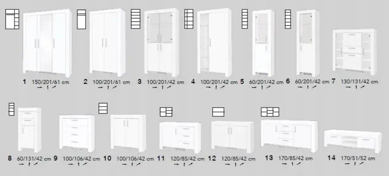 CEZAR je moderní nábytkový systém dobře hodící se pro zařízení obývacího pokoje nebo ložnice. Nábytek je vyroben z 16mm laminované dřevotřísky a kraje jsou pečlivě dokončeny dýha PVC, což dělá nábytek odolný pro každodenní používání. Tento systém nabízí celou řadu prvků, z nichž si můžete vytvořit svůj vlastní pokoj.