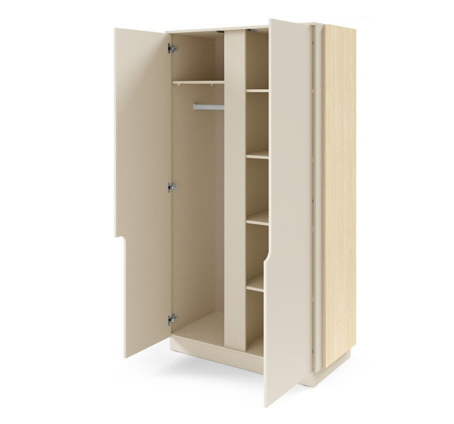 Šatní skříň POSITANO 1 je 2-dveřová skříň s klasickým otvíráním, což zajišťuje snadný a pohodlný přístup k uloženým věcem. Vnitřní uspořádání skříně je navrženo tak, aby maximálně využilo dostupný prostor. Uvnitř naleznete police a tyč na zavěšení oblečení, což vám umožní přehledně uspořádat vaše oblečení, boty a doplňky.