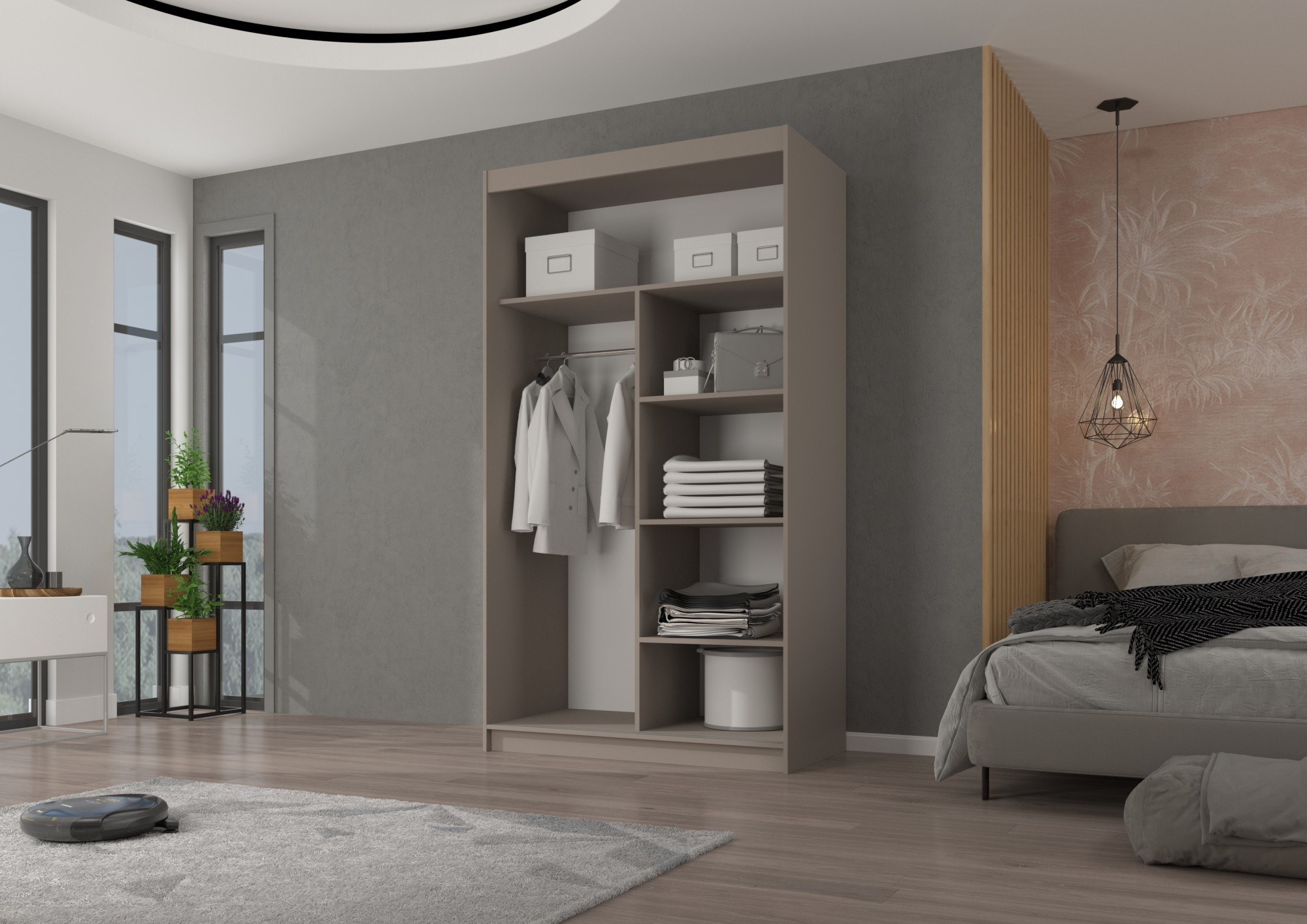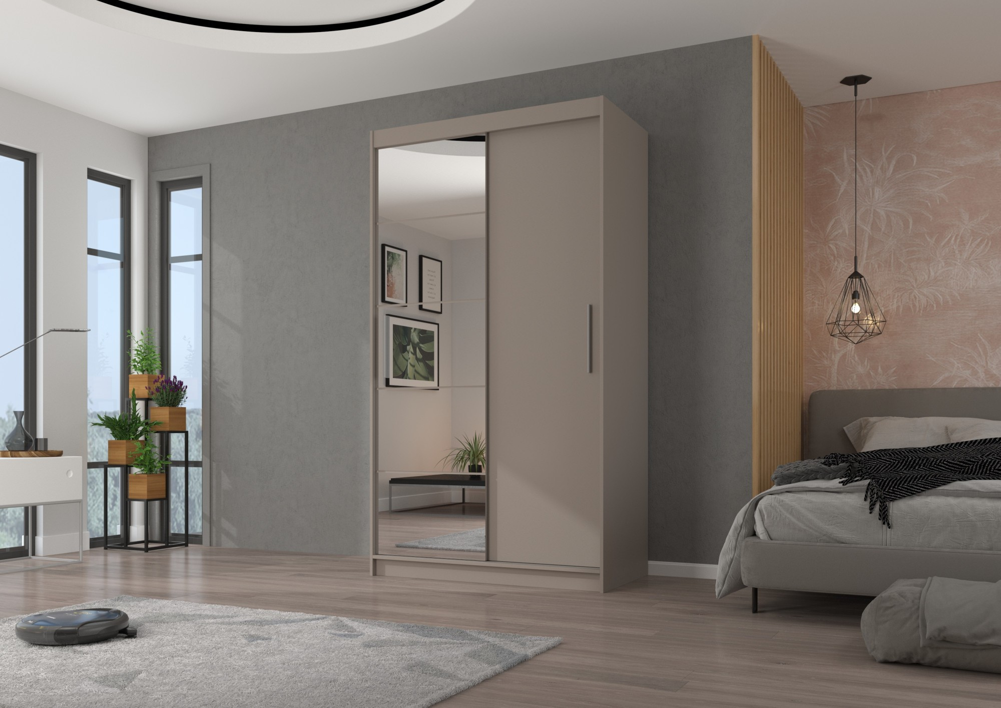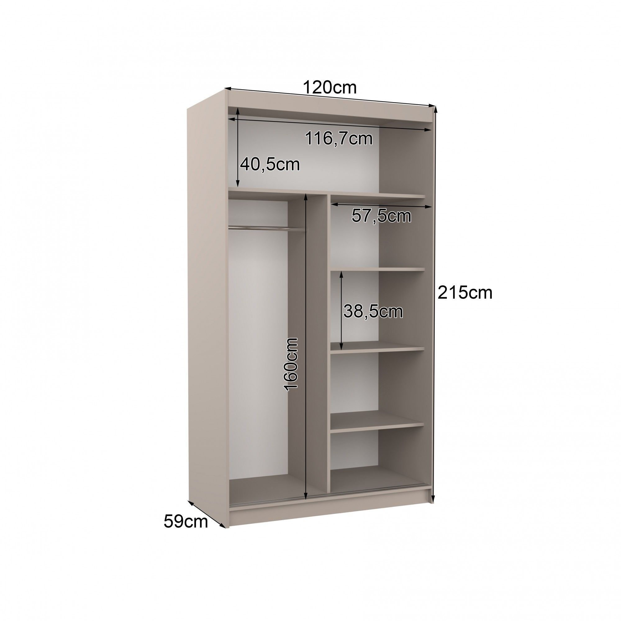 Šatní skříň s posuvnými dveřmi a zrcadlem ESTI 120 Kašmír+Kašmír