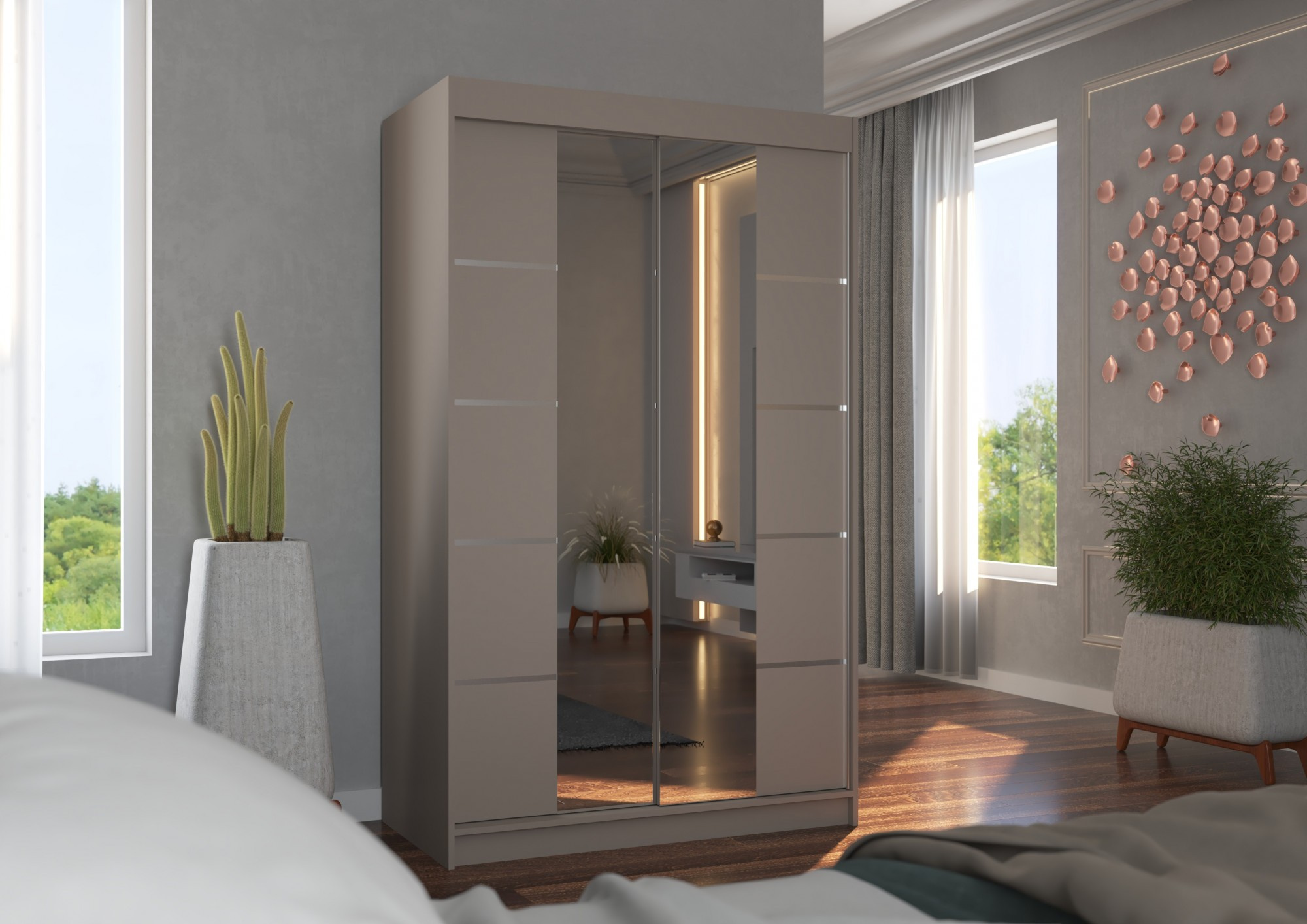 Šatní skříň s posuvnými dveřmi a zrcadlem GENUA 120 Kašmír+Kašmír