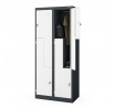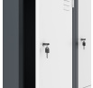 Skříň typu L nabízí až 4 samostatné uzamykatelné schránky, které poskytují dostatek prostoru pro uložení osobních věcí pro více uživatelů. Každá schránka je vybavena tyčí na zavěšení oděvů, což umožňuje pohodlné a bezpečné uložení i delších kusů oblečení. Prodloužené výklenky, s výškou až 114 cm v nejširším místě, zajišťují, že vaše oděvy zůstanou nezmačkané a v perfektním stavu.