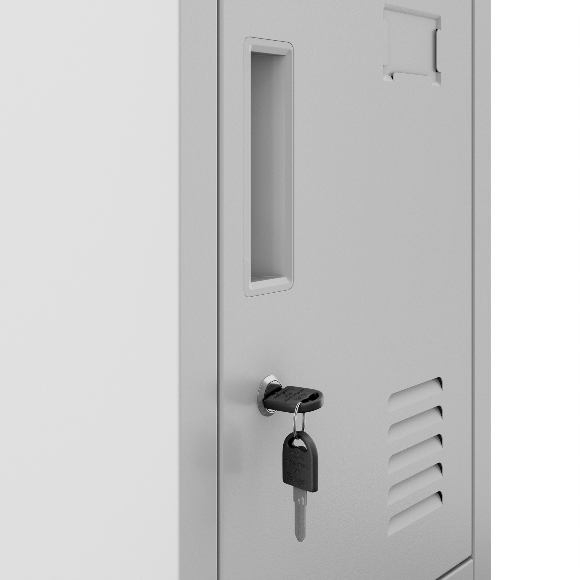 Každá přihrádka je vybavena kvalitním zámkem na klíč, který chrání osobní věci před neoprávněným přístupem. Ke každé skříňce jsou dodávány dva klíče, což umožňuje sdílení přihrádky mezi dvěma osobami nebo zajišťuje náhradní klíč v případě ztráty.