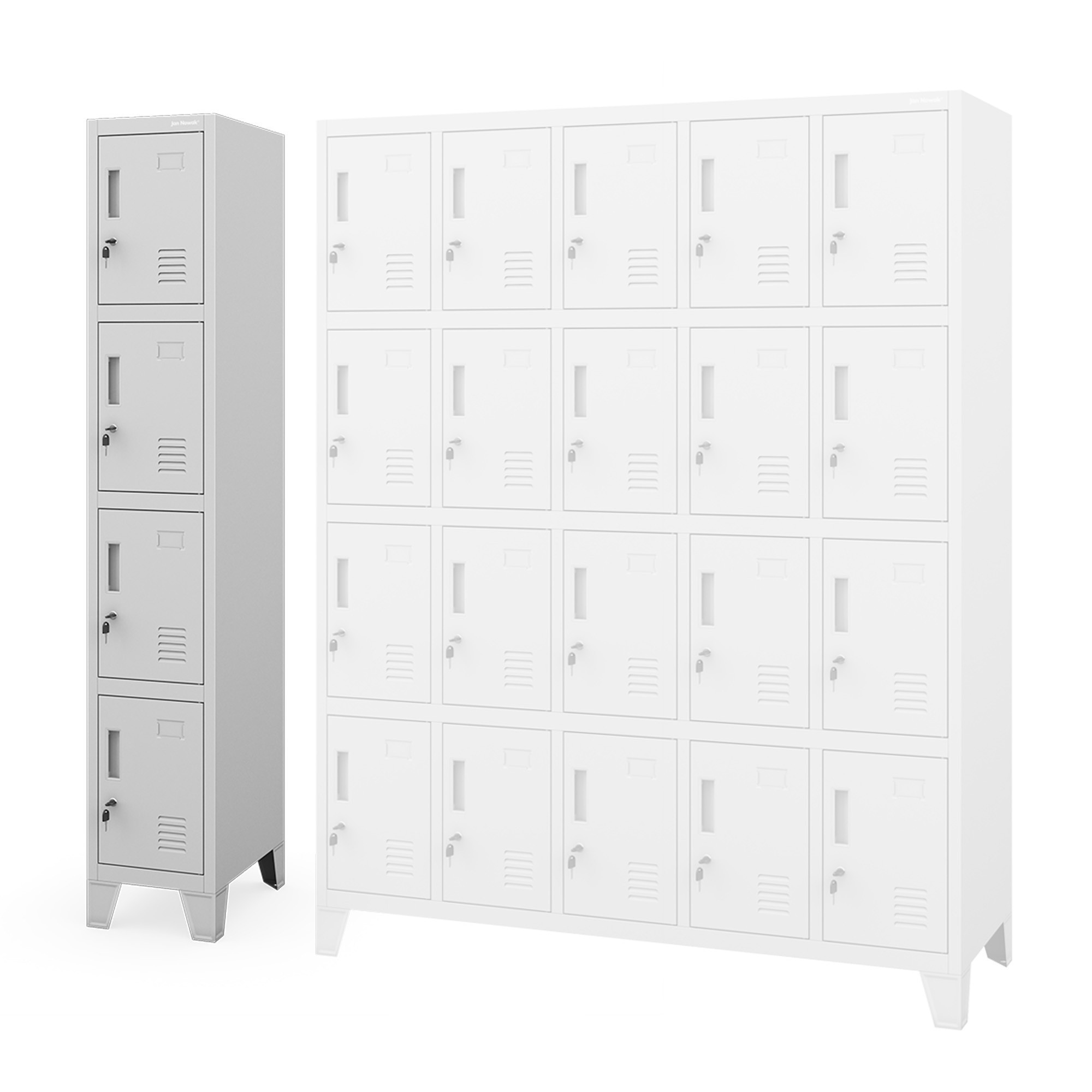 Skříňka je rozdělena na čtyři samostatné přihrádky, z nichž každá je vybavena vlastním zámkem. To vám umožní bezpečně uložit osobní věci, oblečení, tašky, knihy a další předměty, aniž byste se museli obávat o jejich ztrátu nebo poškození. Ke každé skříňce obdržíte dva klíče, což je ideální pro sdílení s kolegou nebo pro případ ztráty jednoho z klíčů.