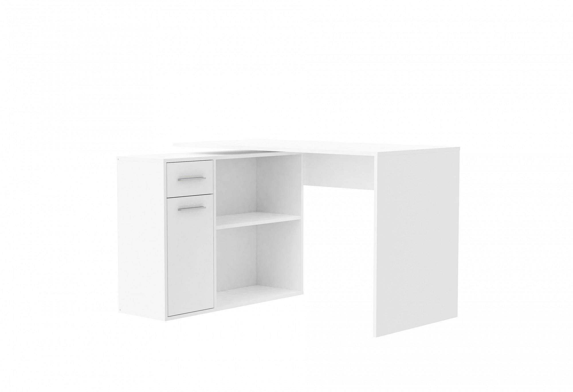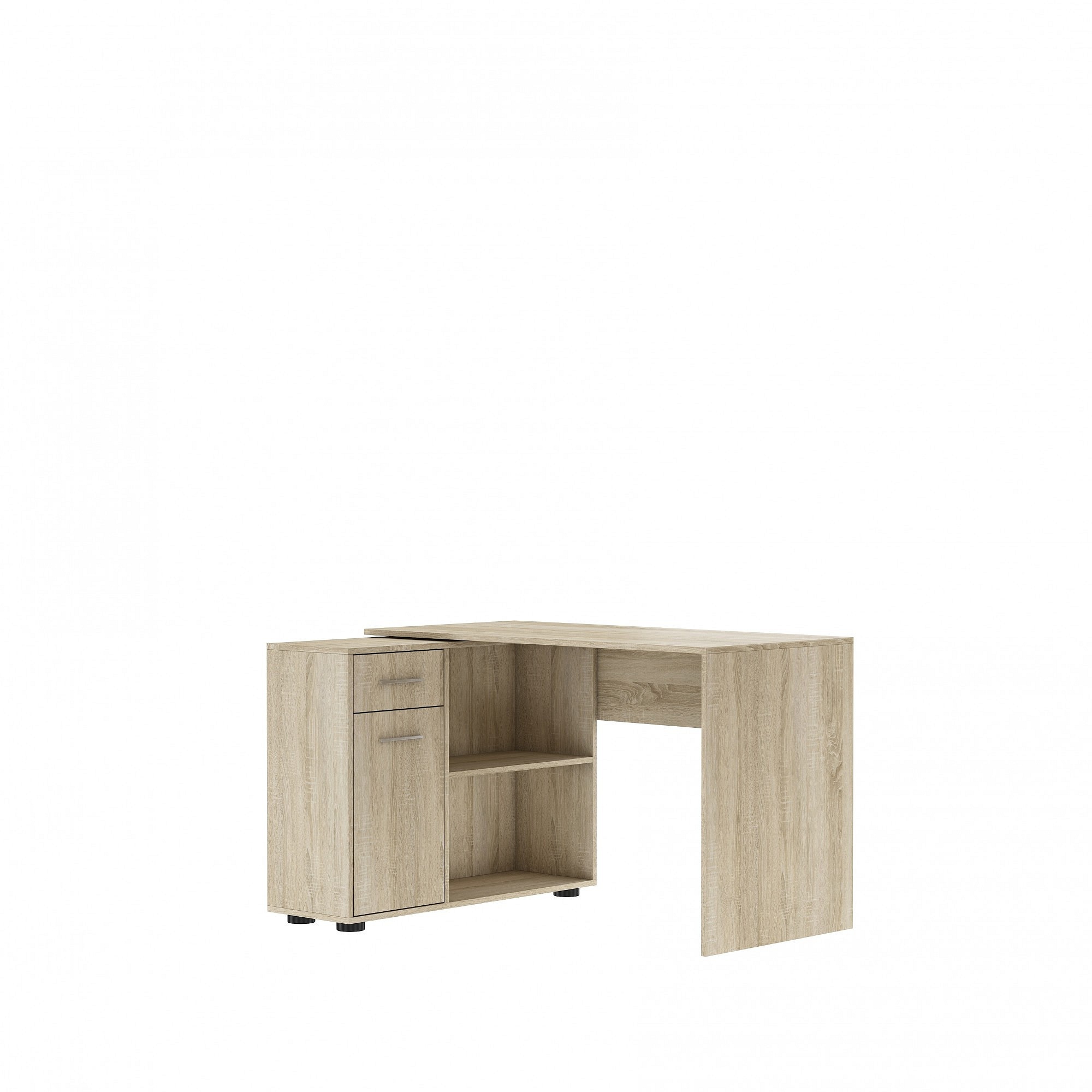 Rohový stůl SAULO se ideálně hodí do studentského pokoje, kanceláře nebo pracovny. Díky své rohové konstrukci se vejde i do malých místností. Nábytek je vybaven zásuvkou, skříňkou a prostornými policemi, což zajišťuje dostatek místa pro uložení kancelářských potřeb. Psací stůl SAULO je praktický a univerzální kus nábytku, který se jistě hodí do většiny interiérů.