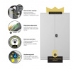 - Bezpečnostní Zámek: Dvoukřídlé dveře jsou vybaveny pevným zámkem se třemi uzamykacími body, který chrání obsah skříně před neoprávněným přístupem. Součástí balení jsou 2 klíče.