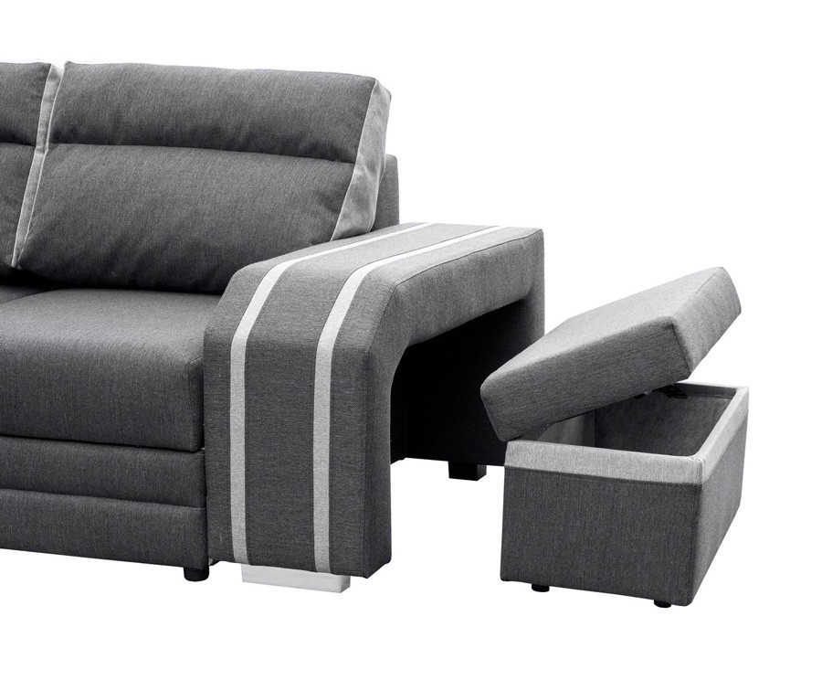Sedací souprava Avanti osloví každého, kdo preferuje moderní eleganci a zároveň pohodlí a praktičnost. Sedací souprava je rozkládací a má 2 praktické úložné prostory. V jedné područi je důmyslně ukrytý bar a ve druhé područi je taburet s úložným prostorem. Výplň sedáků tvoří kombinace pružin faliste s kvalitní PUR pěnou. Jednoduchým rozkladem pomocí automatu vznikne lůžko vhodné k příležitostnému spaní. Sedací soupravu nabízíme v kvalitní potahové látce se zajímavým lemováním, a to v několika barevných provedeních, které také naleznete v naší nabídce. Vyobrazené dekorace nejsou v ceně.