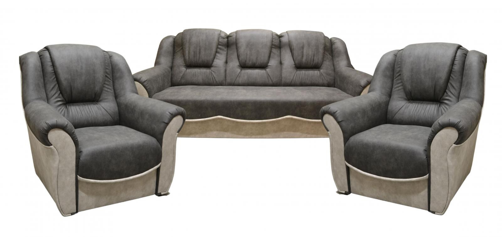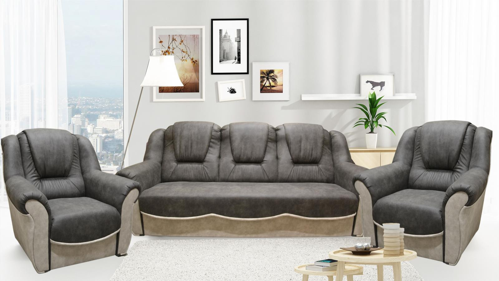 Sedací souprava Bára je stále velmi oblíbeným klasickým modelem sedací soupravy v provedení 3F+1+1. Je velmi pohodlná a zároveň praktická. Sedací souprava je rozkládací a samozřejmostí je i úložný prostor, který můžete využít např.na lůžkoviny. Jednoduchým rozkladem pomocí systému "klik klak" vznikne lůžko k příležitostnému přespání Vaší návštěvy. Sedací souprava je potažena kvalitní látkou, v kombinaci dvou barev imitující kůži. Cena sedací soupravy je uvedena za rozkládací trojsed a dvě křesla. Zobrazení barev na fotografii se může od skutečnosti nepatrně lišit.