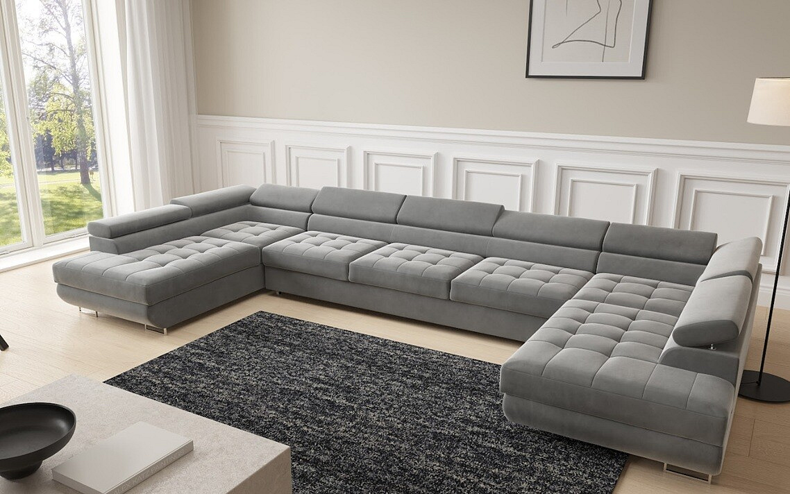 Sedací souprava BENJAMIN U 158 XL je mistrovským dílem moderního designu. Její tvar do "U" poskytuje dostatek prostoru pro celou rodinu nebo přátele, a to bez kompromisů na pohodlí. Sedák je vyroben z kvalitní pěny a pružin falistych, což zajišťuje optimální podporu a komfort při sezení. Nastavitelné opěrky hlavy přidávají další úroveň pohodlí, umožňující vám relaxovat přesně tak, jak si přejete.