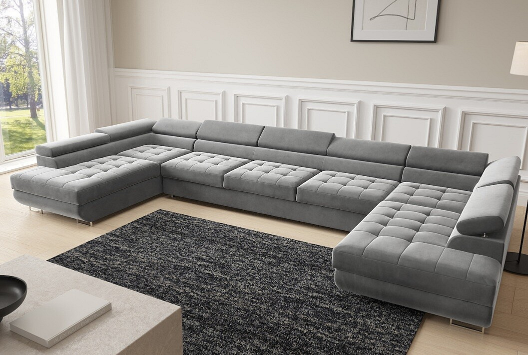 Sedací souprava BENJAMIN U 158 XL je mistrovským dílem moderního designu. Její tvar do "U" poskytuje dostatek prostoru pro celou rodinu nebo přátele, a to bez kompromisů na pohodlí. Sedák je vyroben z kvalitní pěny a pružin falistych, což zajišťuje optimální podporu a komfort při sezení. Nastavitelné opěrky hlavy přidávají další úroveň pohodlí, umožňující vám relaxovat přesně tak, jak si přejete.