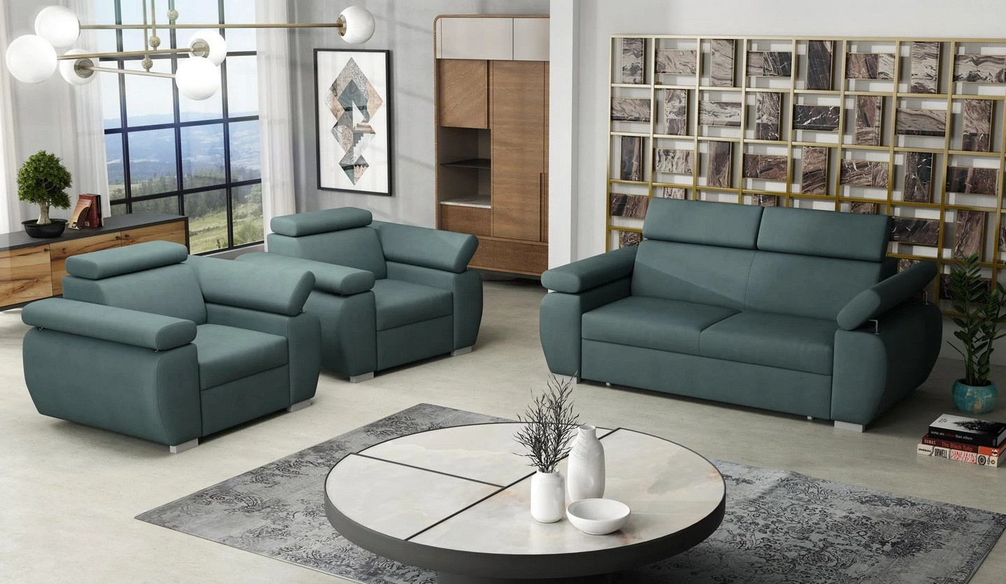 Sedací souprava Bodie je vyrobena v jednoduchém elegantním designu, který se hodí do všech interiérů. Sedací souprava je potažena kvalitní látkou Kronos, která je sametově hebká a jemná, má třpytivý odlesk, je odolná proti vyblednutí a nežmolkovatí. Tento potahový materiál zanechává na povrchu stopy podle toho, jakým směrem se položí krátký vlas. Sedací soupravu nabízíme v několika odstínech této látky. Výplň sedáků tvoří kombinace vlnitých pružin s kvalitní HR pěnou. Pro pohodlí při sezení a odpočinku, je sedací souprava vybavena polohovacími opěrkami hlavy. Cena je uvedena za sestavu 3+1+1. Vyobrazené doplňky a dekorace nejsou v ceně. Zobrazení barev na fotografii se může od skutečnosti lišit.